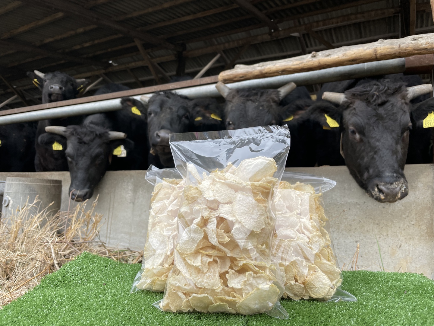 自社の牛糞と籾殻を使った完熟堆肥をふんだんに使い大根を栽培し、スライスした大根をハウスでじっくり乾燥させて作りました。