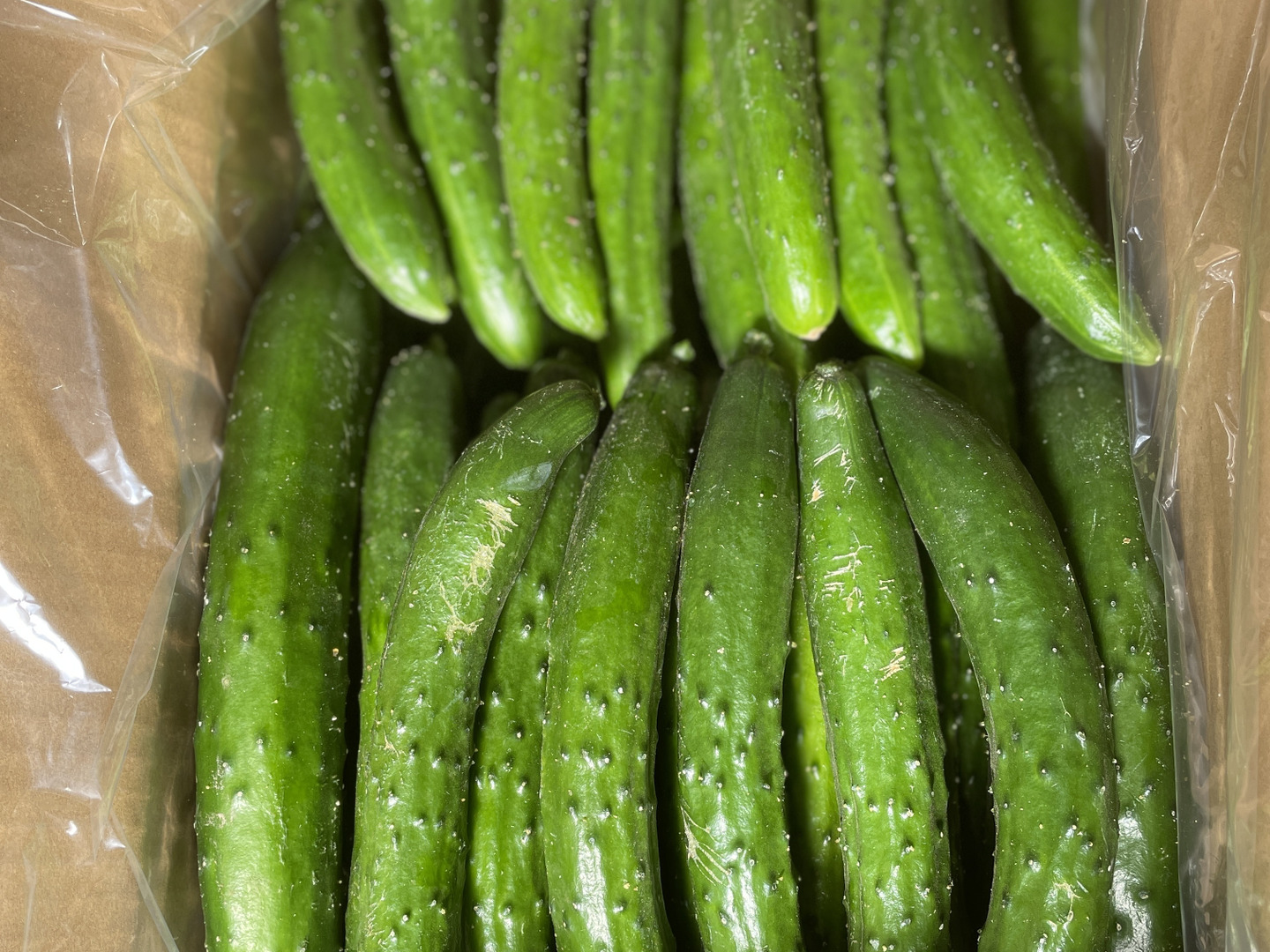 きゅうりの本数やキズ等の状況はその日に収穫されたきゅうりで変わります。80サイズのダンボール箱に詰めます。箱込みで約5.0キロあります。(5.0キロは超えません。)