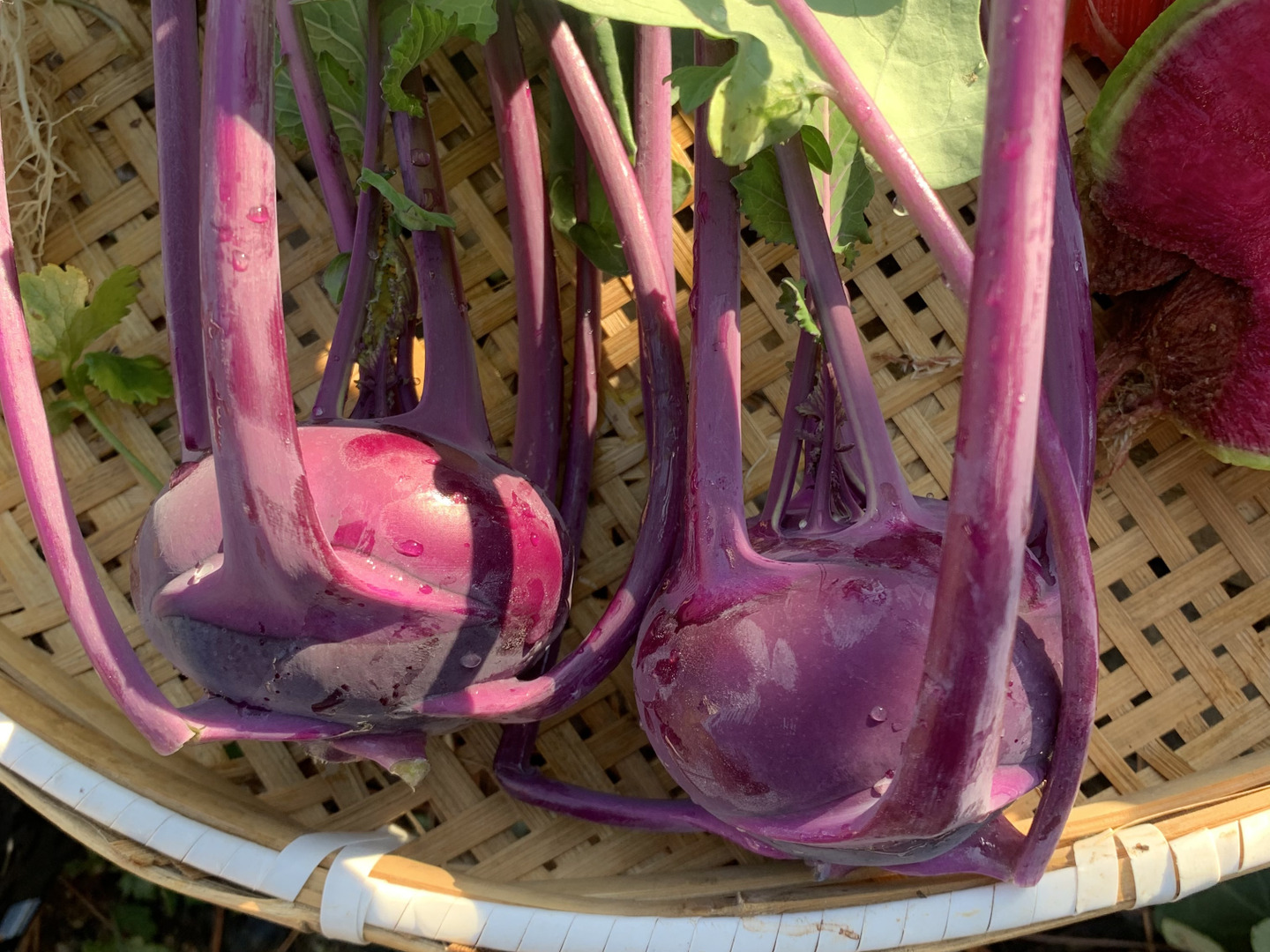 コールラビは風味や食感はキャベツの芯のように、歯ごたえのあるシャキっとした食感。そして、見た目とは裏腹にみずみずしい歯ごたえ! 大根のような香りがしますが辛味はなく、ほんのりとした甘みが特徴的です。かぶのように生のままサラダにしても、炒め物やマリネにしてもおいしくいただけます。
