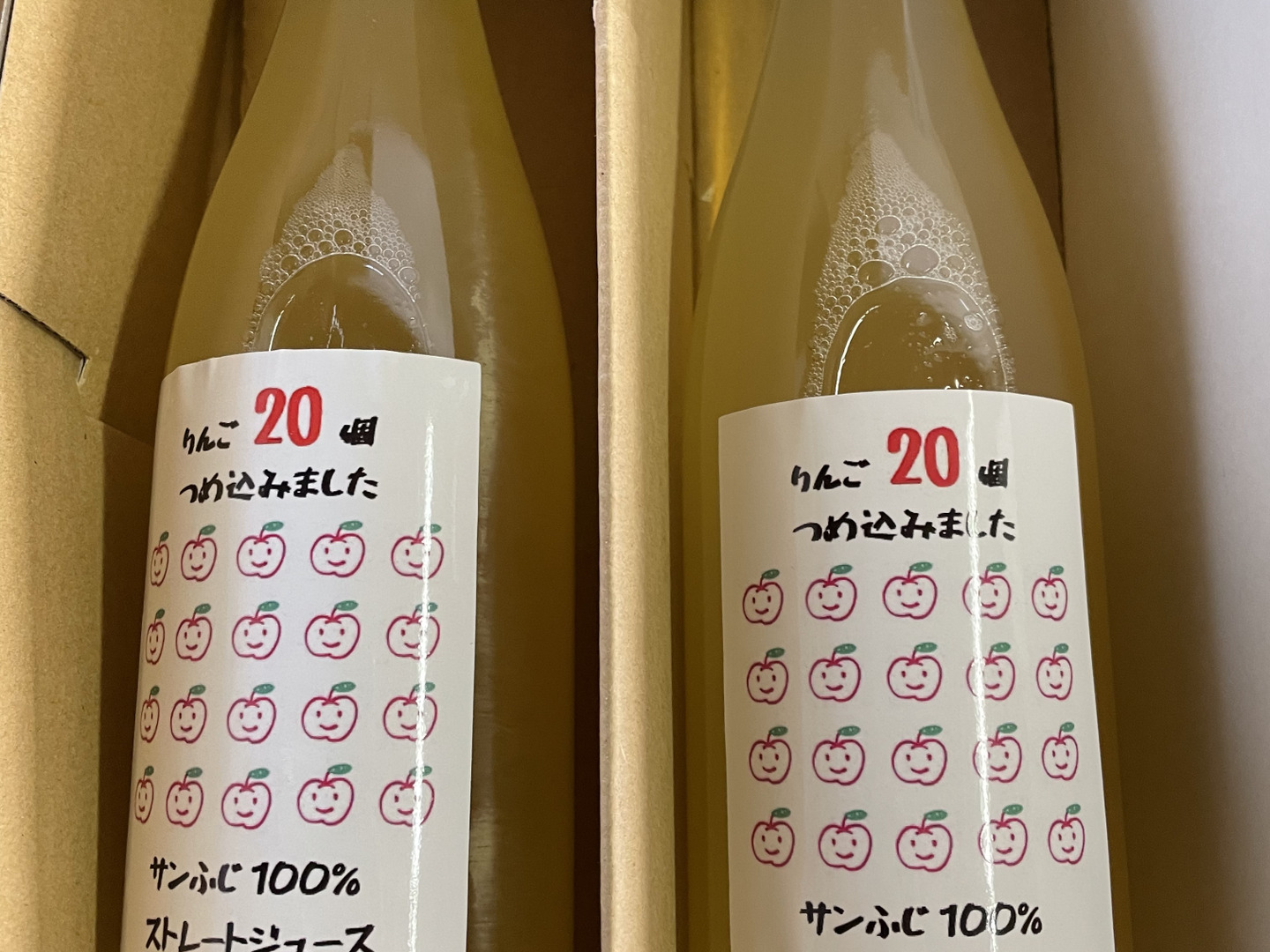 サンふじりんごで出来たジュースです。もちろん当農園のりんごだけを使った贅沢な100%ストレート果汁です。