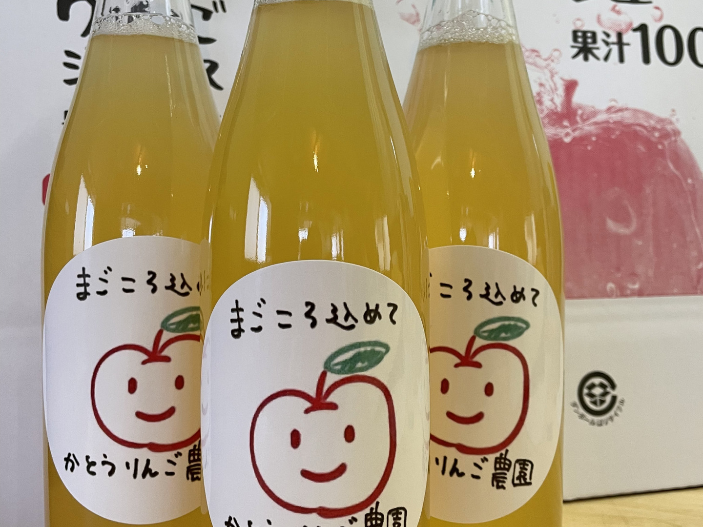 サンふじりんごで出来たジュースです。もちろん当農園のりんごだけを使った贅沢な100%ストレート果汁です。