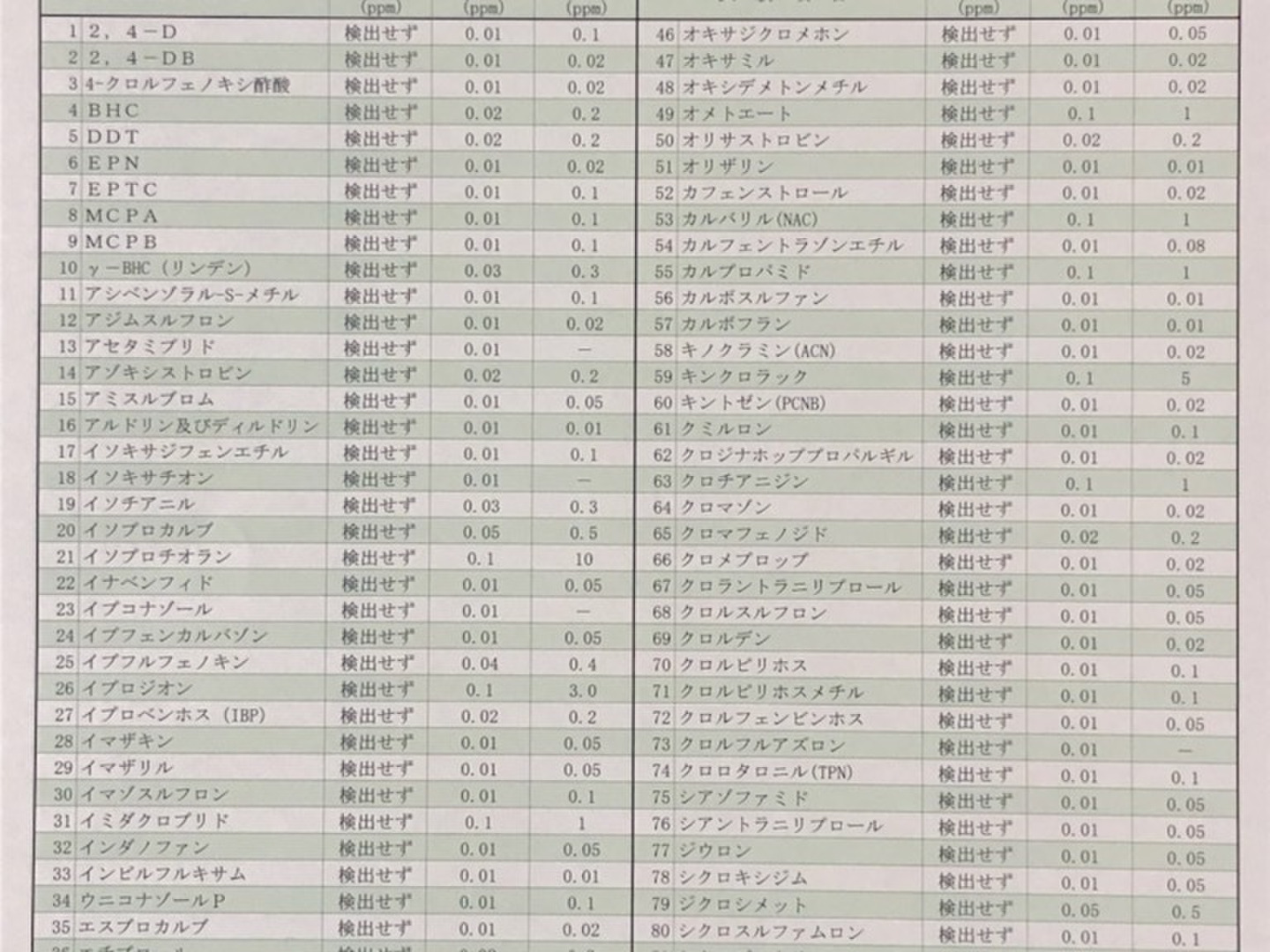 ■ 分析センターの結果では、250種類の農薬は全て不検出でした。