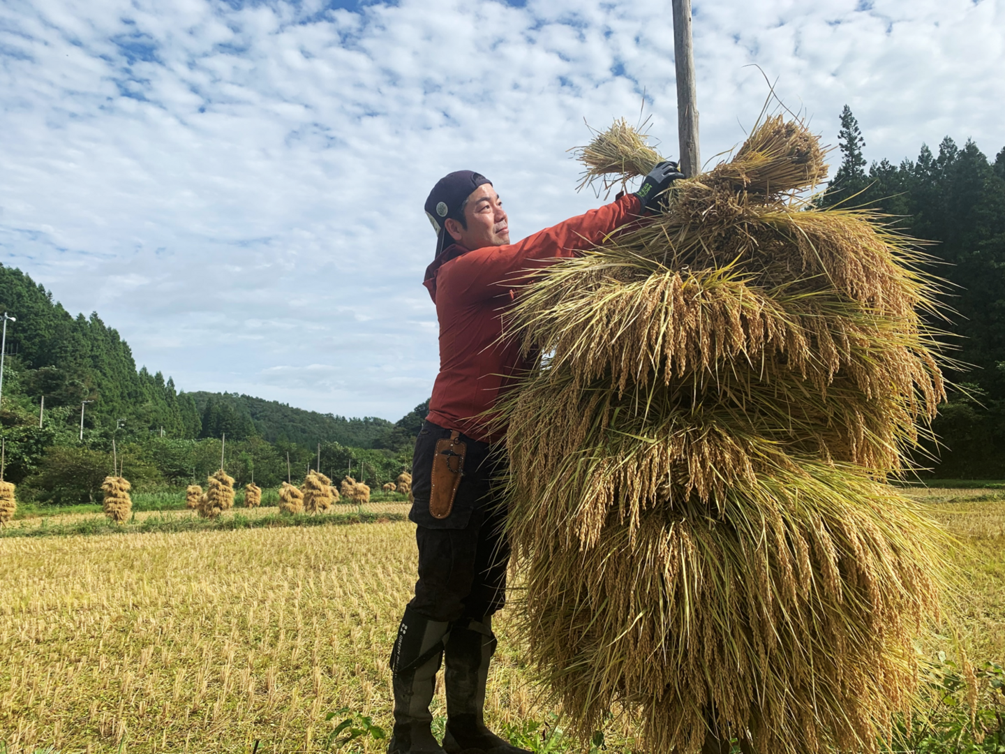 稲を棒にねじりながら干す「ねじりほんにょ」という、宮城県栗原市ならではの方法で天日干し乾燥。ゆっくりじっくり乾燥することでお米にストレスをかけることなく、刈り取った稲藁から栄養をしっかりと吸収したお米は、さらに風味が豊かです。