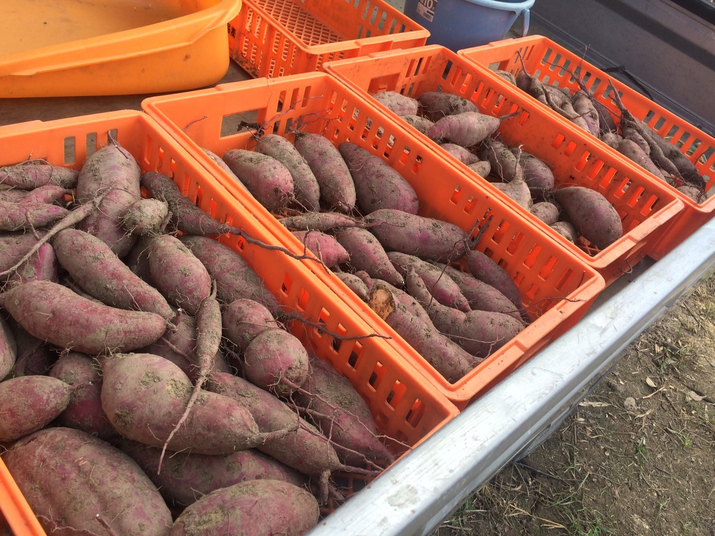 畑は粘土質で掘るのは大変ですが、美味しいお芋ができます。
