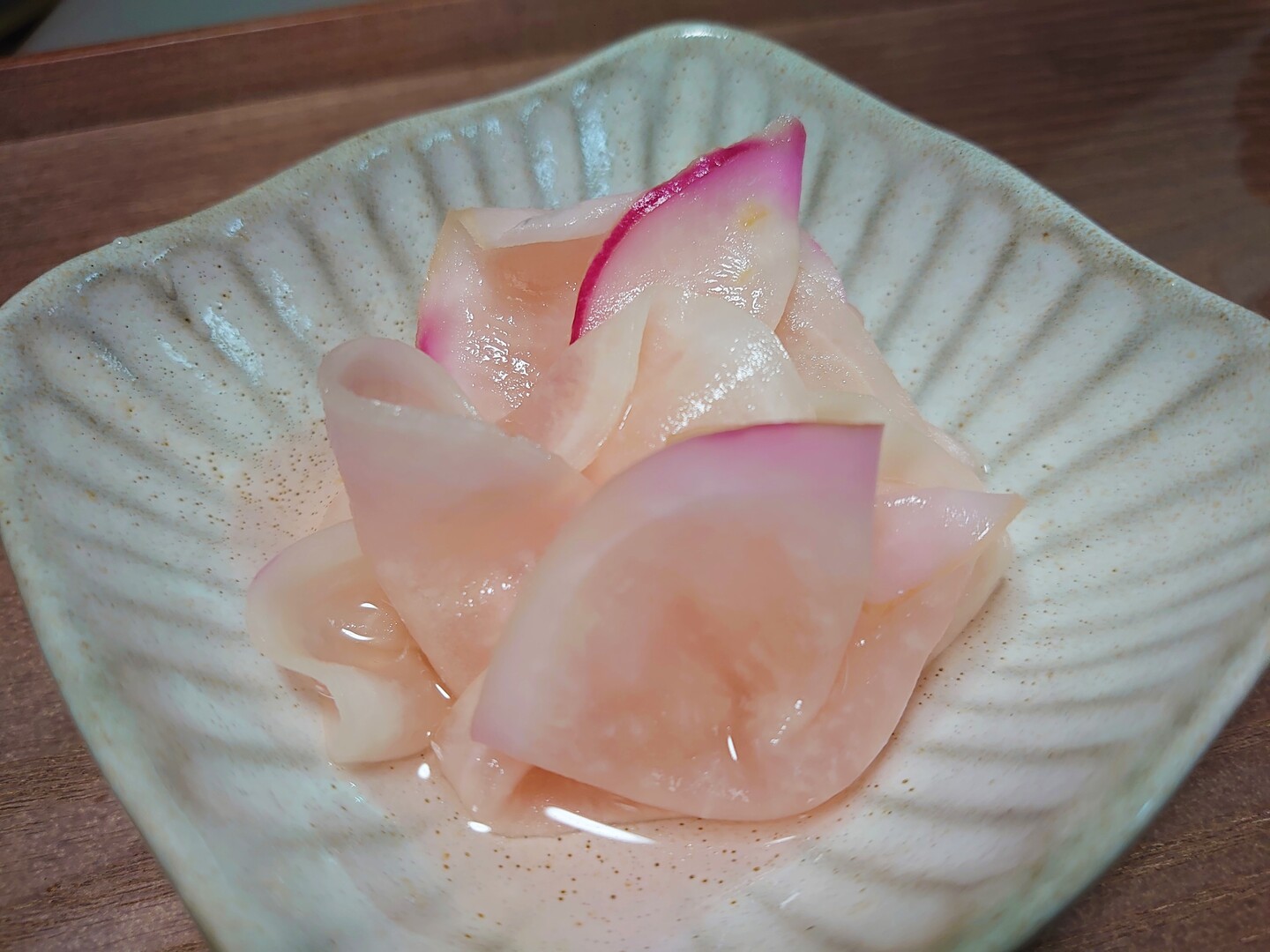 酢の物にすると皮の色が出てほんのりピンクになります!