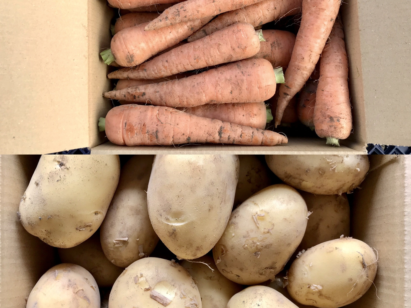鹿児島産のジャガイモ(ニシユタカ)・人参注文を受けてから、収穫日に収穫した箱込み5キロ前後を畑の空気も収穫しながらAB品大中小混合箱詰めして、当日発送します^_^