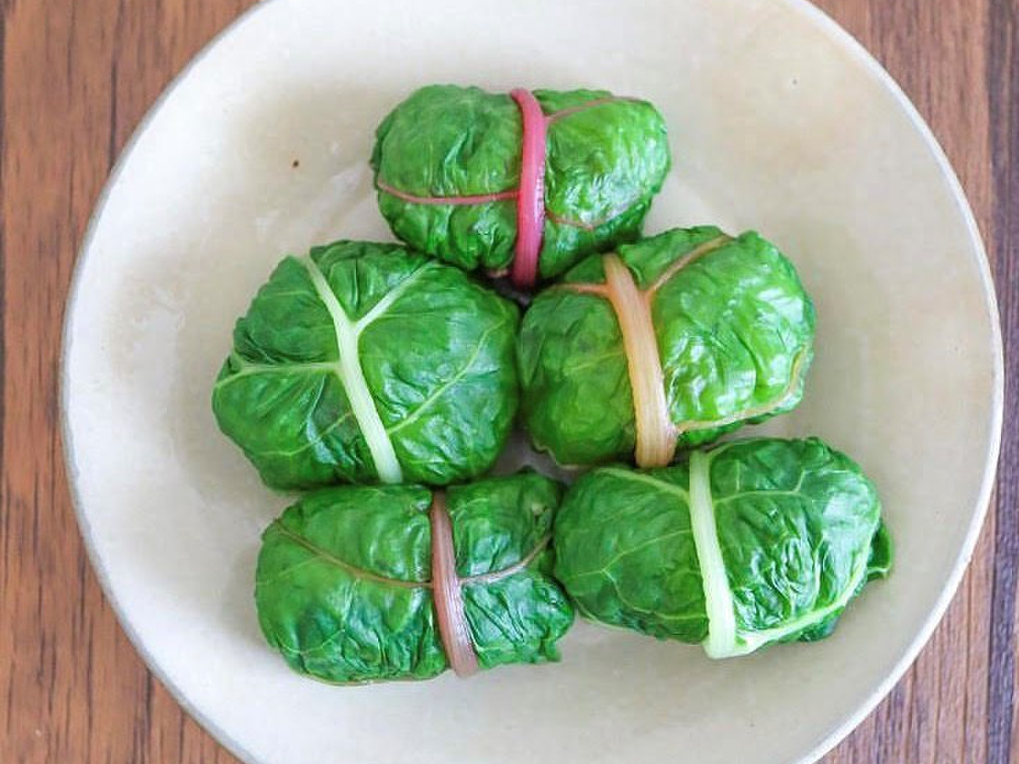 スイスチャードは柄がくたっとなった煮物も美味しいです。以外に葉もしっかりとしていて崩れにくいので、ひき肉などのネタをロールキャベツの様に包んで煮ても綺麗で美味しいです。