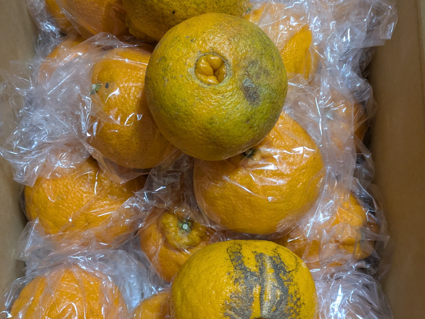 完熟スイートスプリング大小混合約8K 外観からは想像もできない手もベタつく甘さです♪ 昨年多くのお客様に買っていただきました。