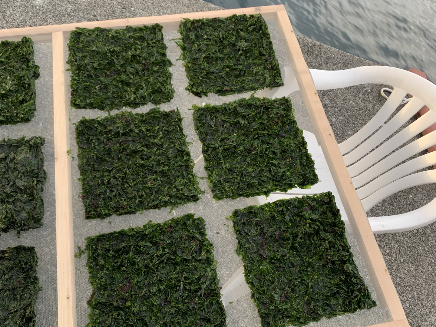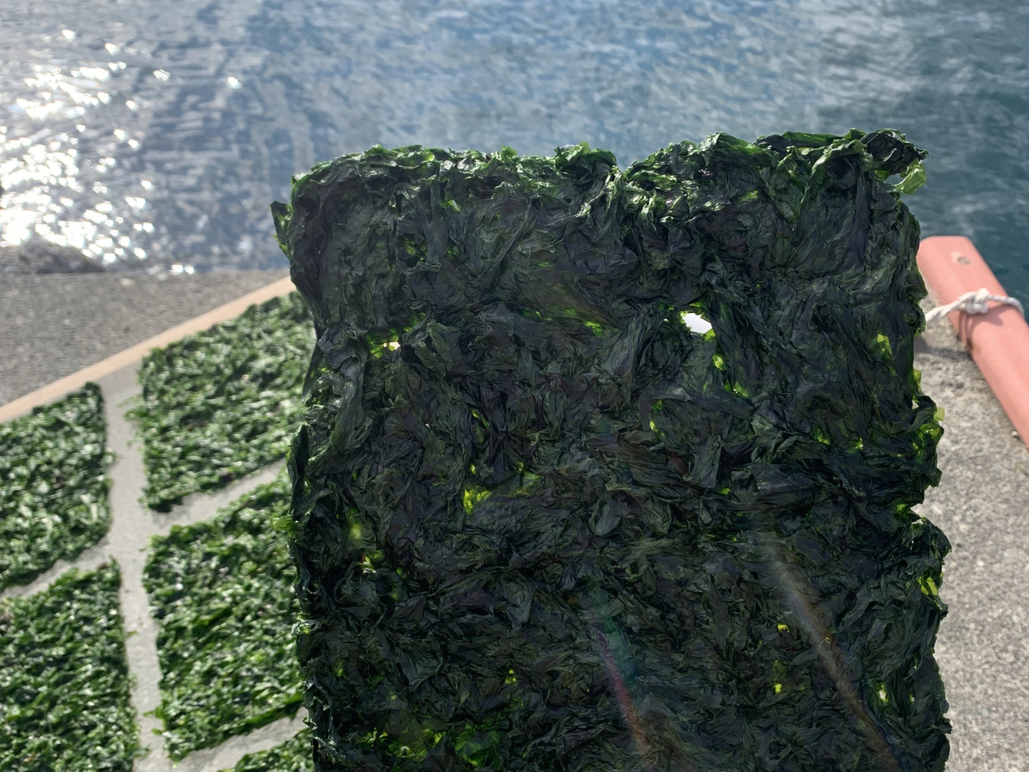 降り注ぐ太陽の光と自然な海風により、あおさは乾燥されていきます。