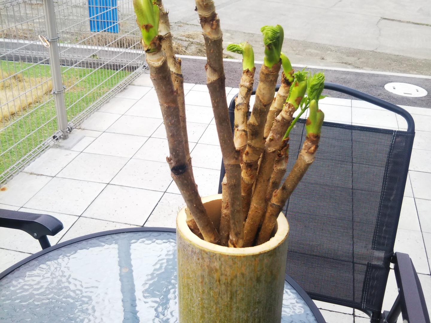 追加出展 『激レア』 自宅で育てるタラの芽 春を一足先に告げる南国の木の芽です タラの芽原木5本・竹の花瓶・栽培マニュアル付き