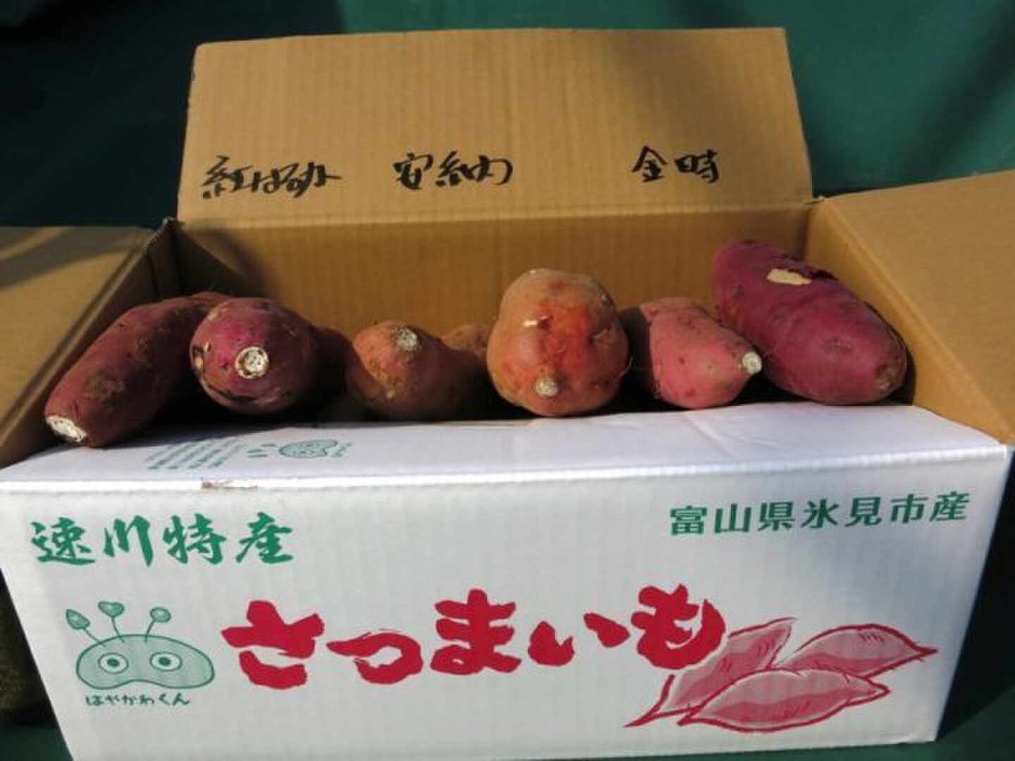 甘みの強い人気の「紅はるか」、その名の通り絹のような舌触りの「シルクスイート」、高い糖度で人気の「安納芋」、アントシアニンたっぷり「紫芋」、北陸での生産が少ない「ほしこがね」「泉」「黄金千貫」「隼人」8種のさつまいもを生産しています。