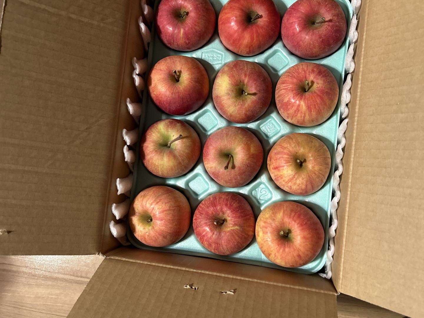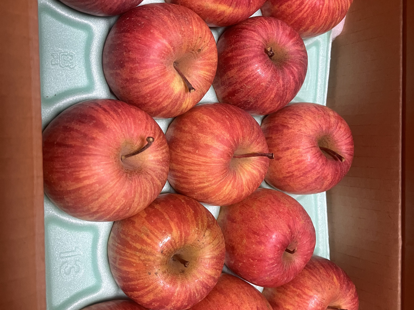 葉取らず栽培のため色むらはありますが、霜害、および農薬半減栽培のため、見た目より、美味いサンふじの本来の味をお楽しみたい方は、ご検討いただけたら嬉しいです😆