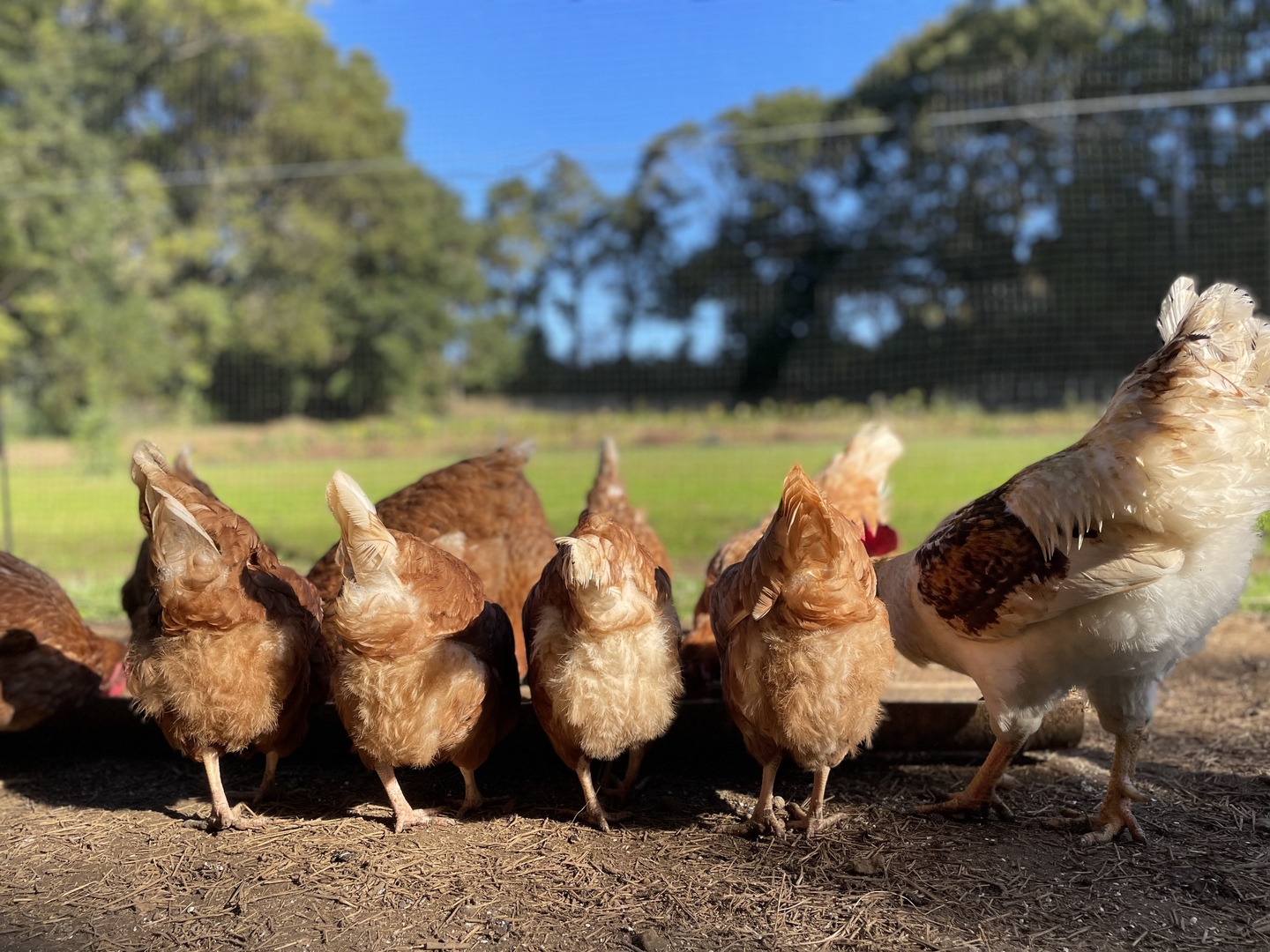 ナチュラルエッグラボの鶏たちは、屋外で太陽の下、各々楽しみながら過ごします。