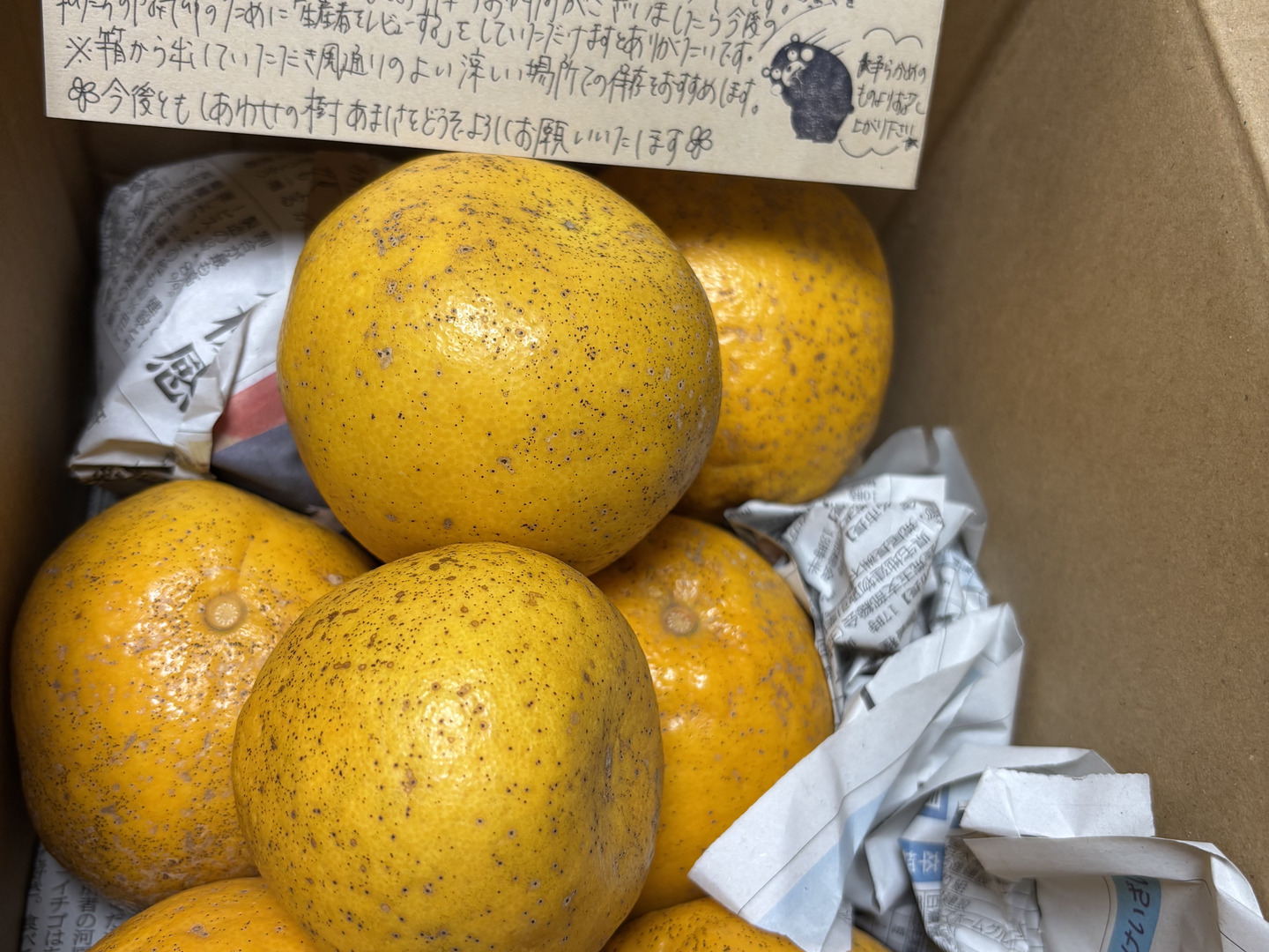 【栽培期間中に農薬・化学肥料不使用で育ったあまくさ晩柑は見た目があまり良くありません。】