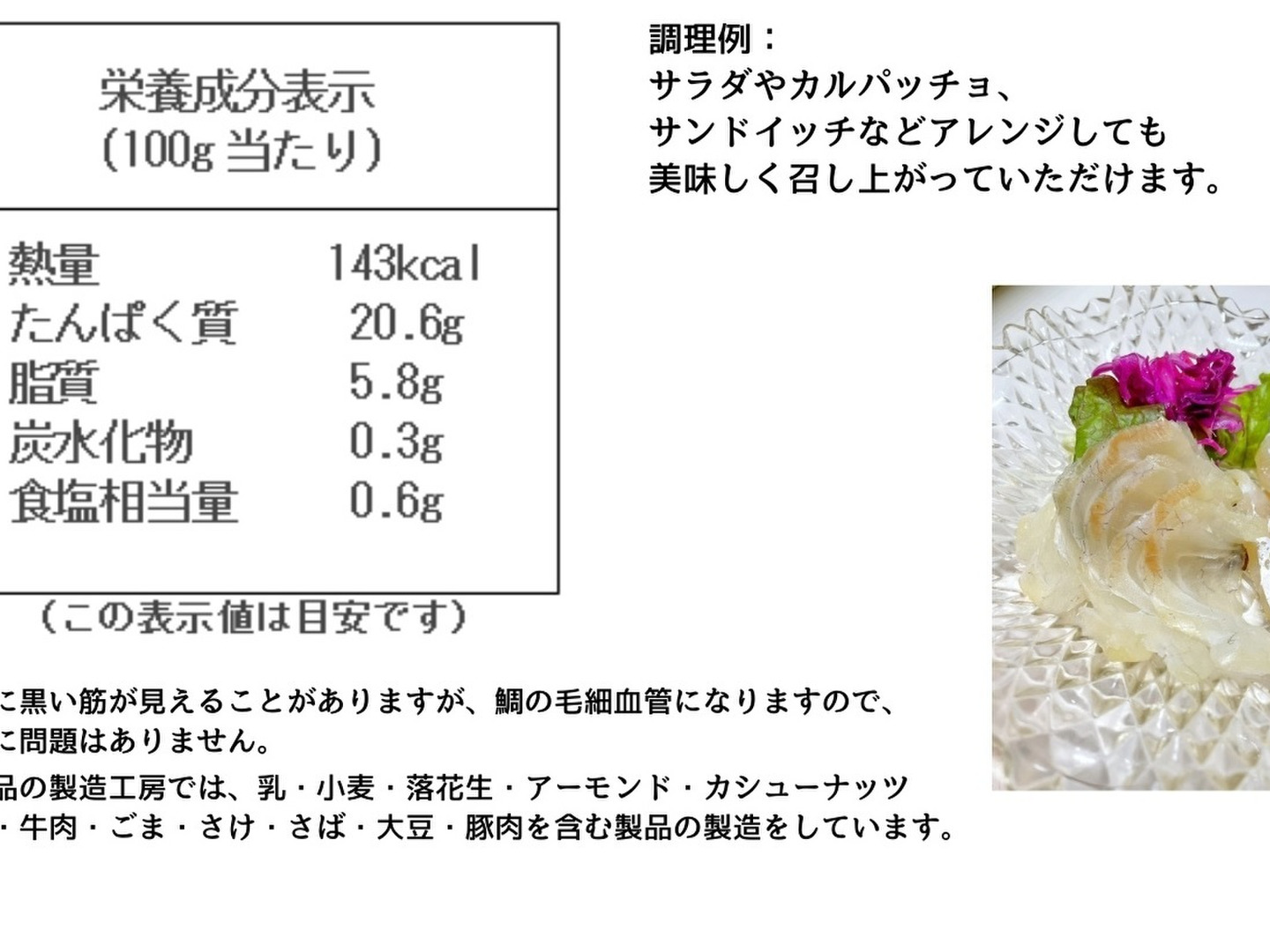 サラダやカルパッチョ、サンドイッチなどアレンジしても美味しく召し上がっていただけます。