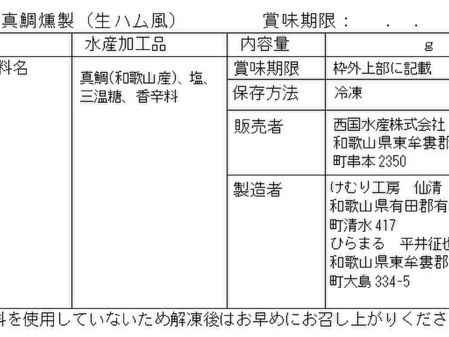 真鯛 燻製 生ハム風1個、熱燻製1個、