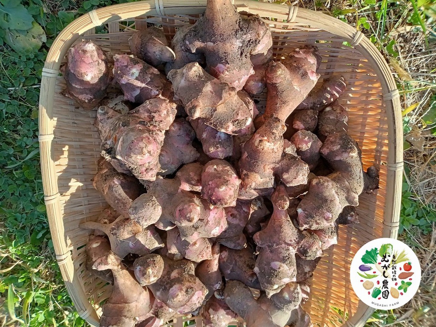 世界三大健康野菜菊芋 。 当園の菊芋はフランス系 赤菊芋でトピナンブールとも言います。 赤菊芋は白の菊芋よりイヌリンが多く含まれ 、免疫力 の 向上も 期待される野菜です。