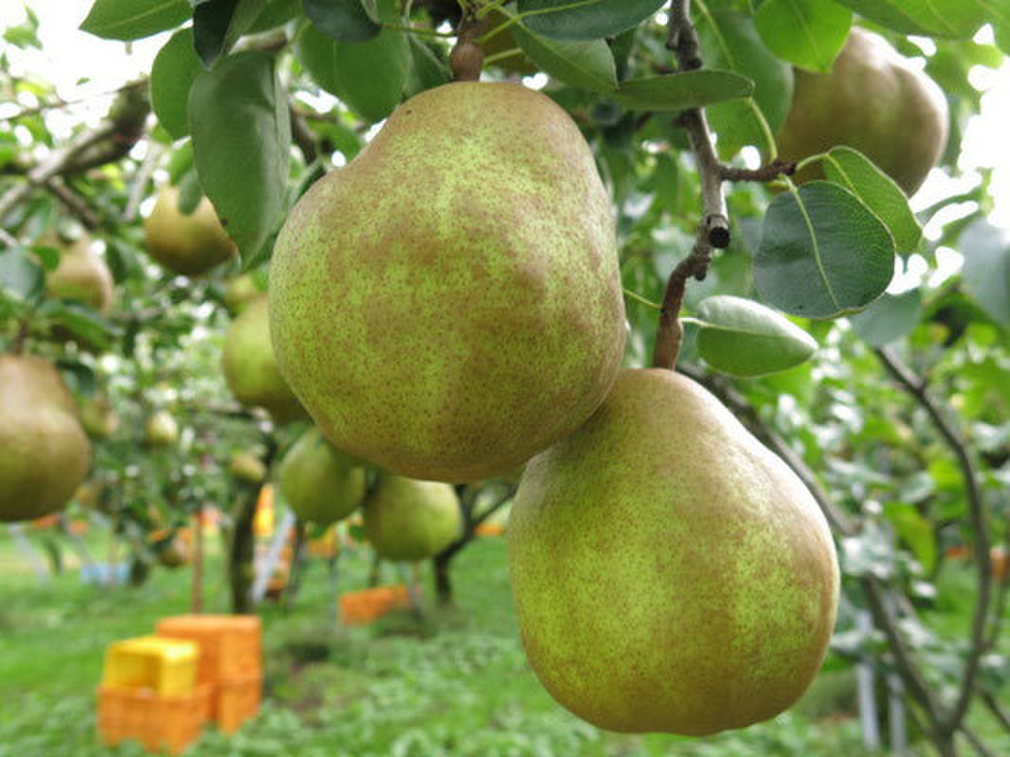 枝を棚に這わせることで、風通しが良くなり、葉っぱが太陽の光を最大限に浴びるため、美味しいラ・フランスができます。