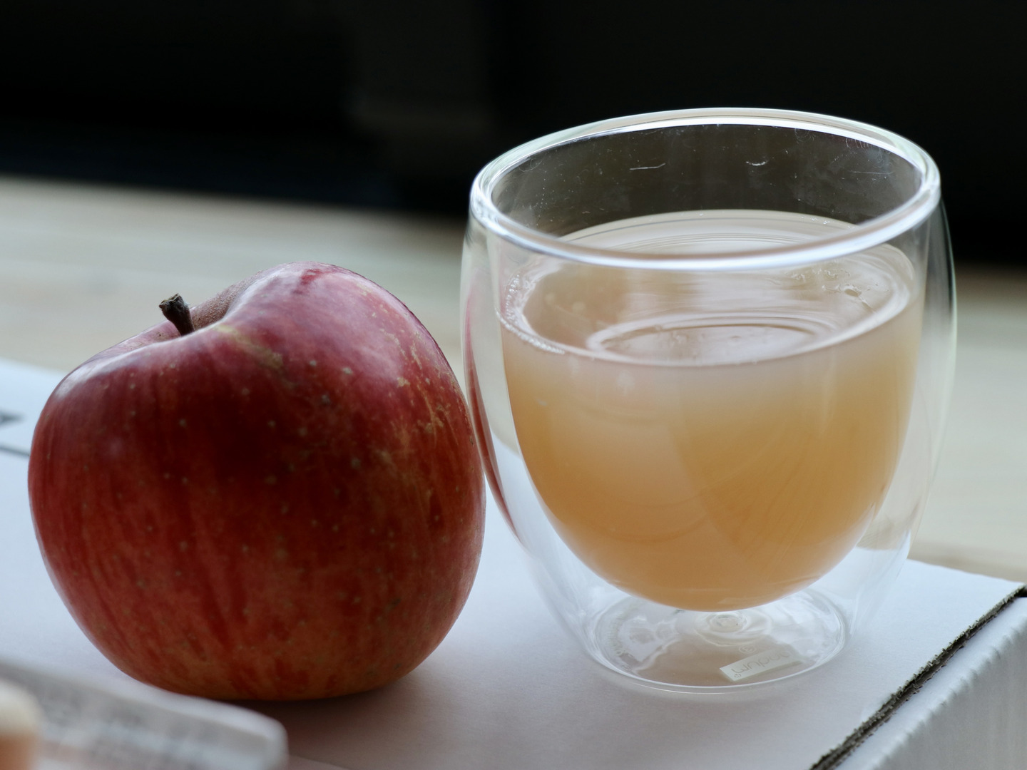 完熟のサンふじを用い本来であれば4月や5月に製造しますが、1月に製造することでリンゴの水分や酸味を生かしたままりんごジュースにすることができます。また一つ一つの美味しいりんごを選別することによって素材そのままの味を生かしたジュースになっております。