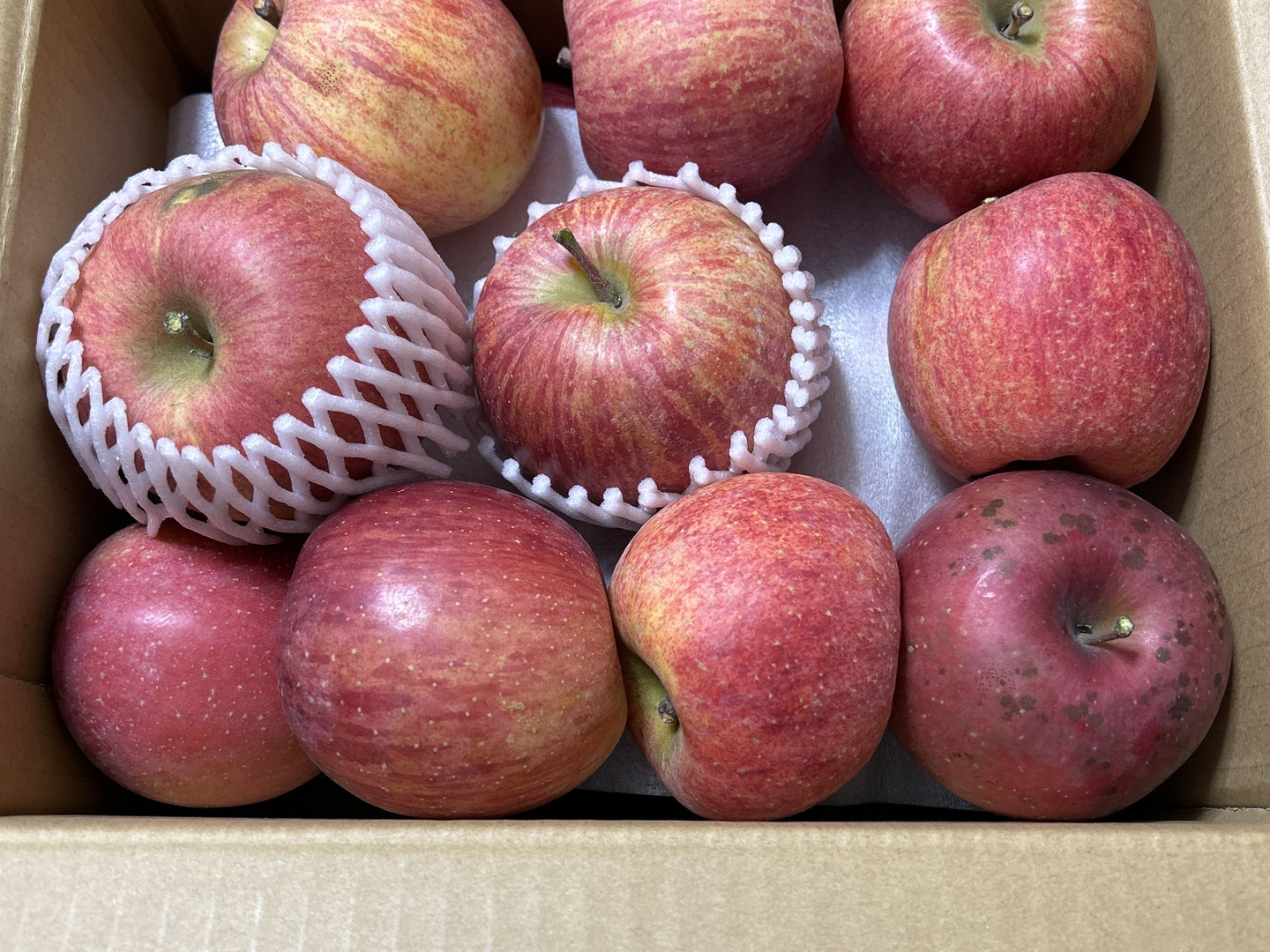 当園は、長野県北部に位置する中野市豊田地区で、3代に渡り、りんごの栽培をしています。冬は雪深く、1年を通して山々からの清水に恵まれ、四季を感じる田舎風景に囲まれています。農薬を最小限に、化学肥料は一切使わずに、安心して食べられるりんごを育てています。見た目より、味を重視して栽培しています。