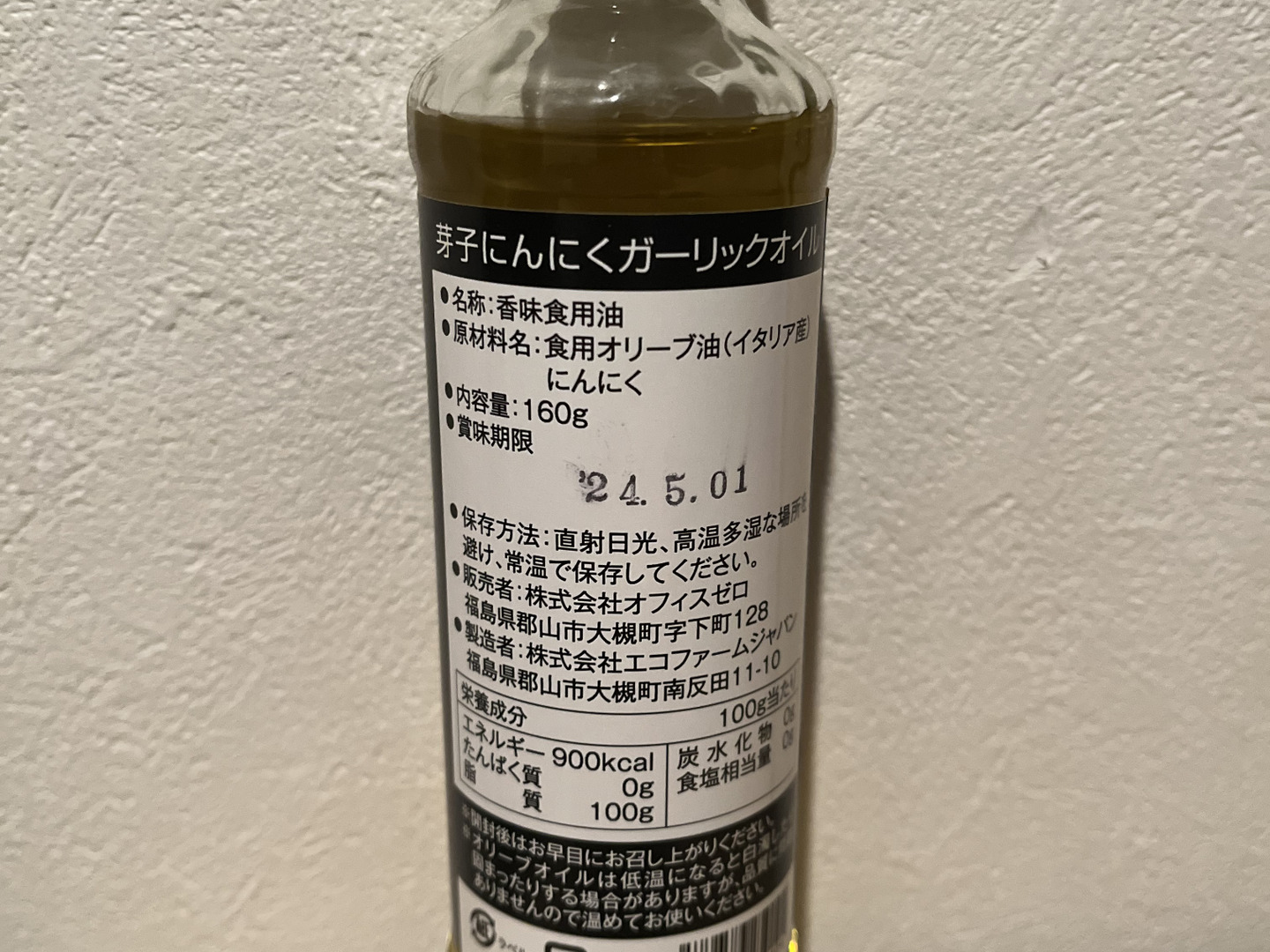 芽子にんにくオリーブオイル(ガーリックオイル)160g