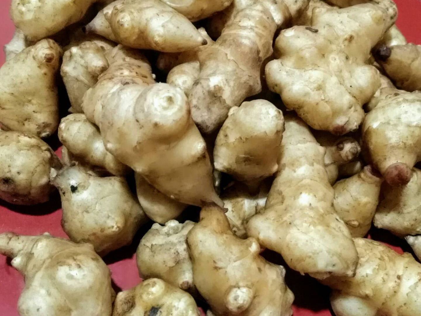 菊芋は乾燥に弱く、洗うと鮮度が落ち、日持ちしなくなってしまいますので、土付きのまま発送いたします。