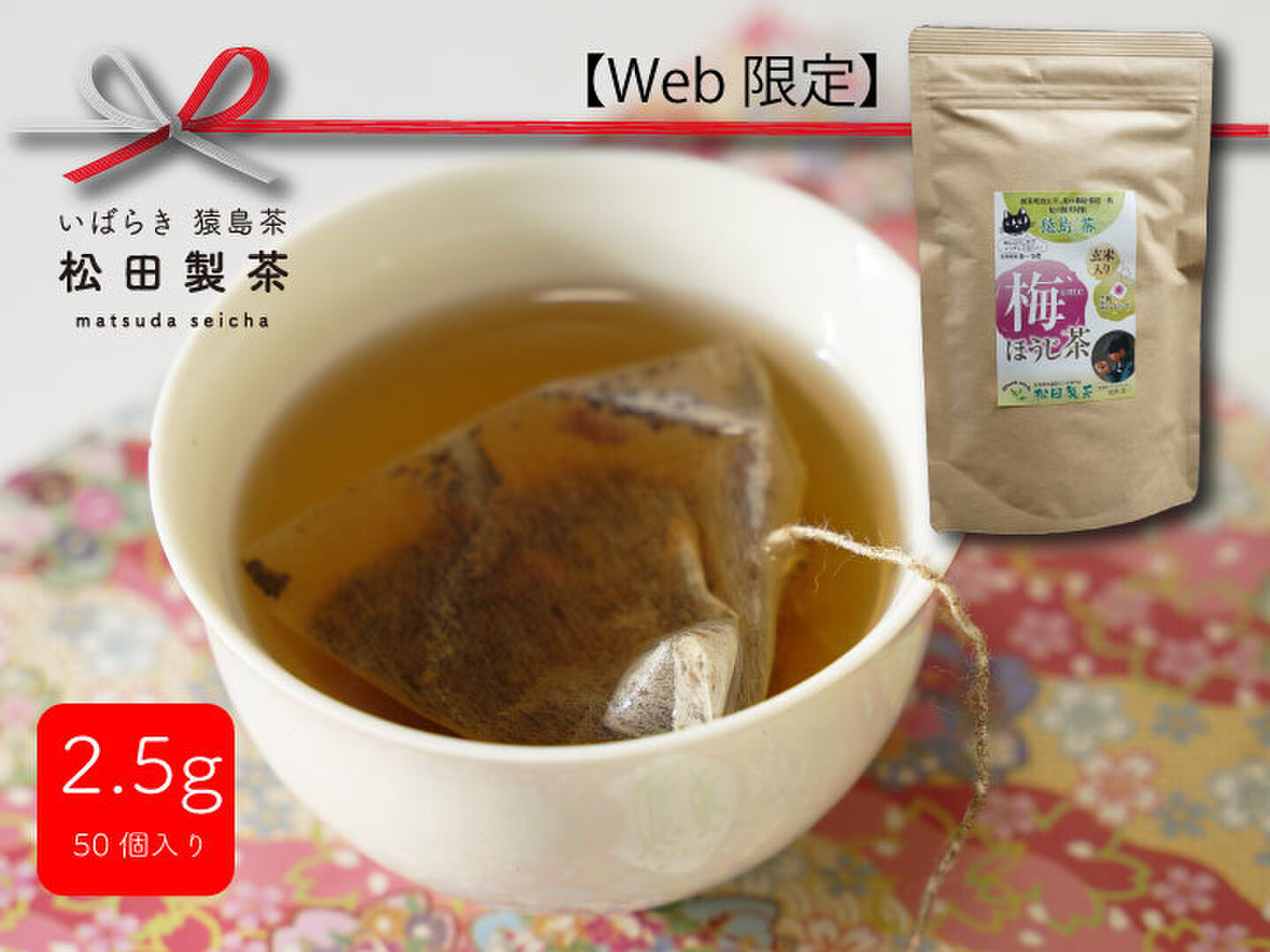 梅ほうじ茶 ほんのちょっとの玄米とほうじ茶の焙煎による香ばしさに国産の梅の香りと酸味が口いっぱいに広がります。 カフェインが少ないので就寝前の水分補給に適しています。便利な湯呑用ひも付きティーバッグです。