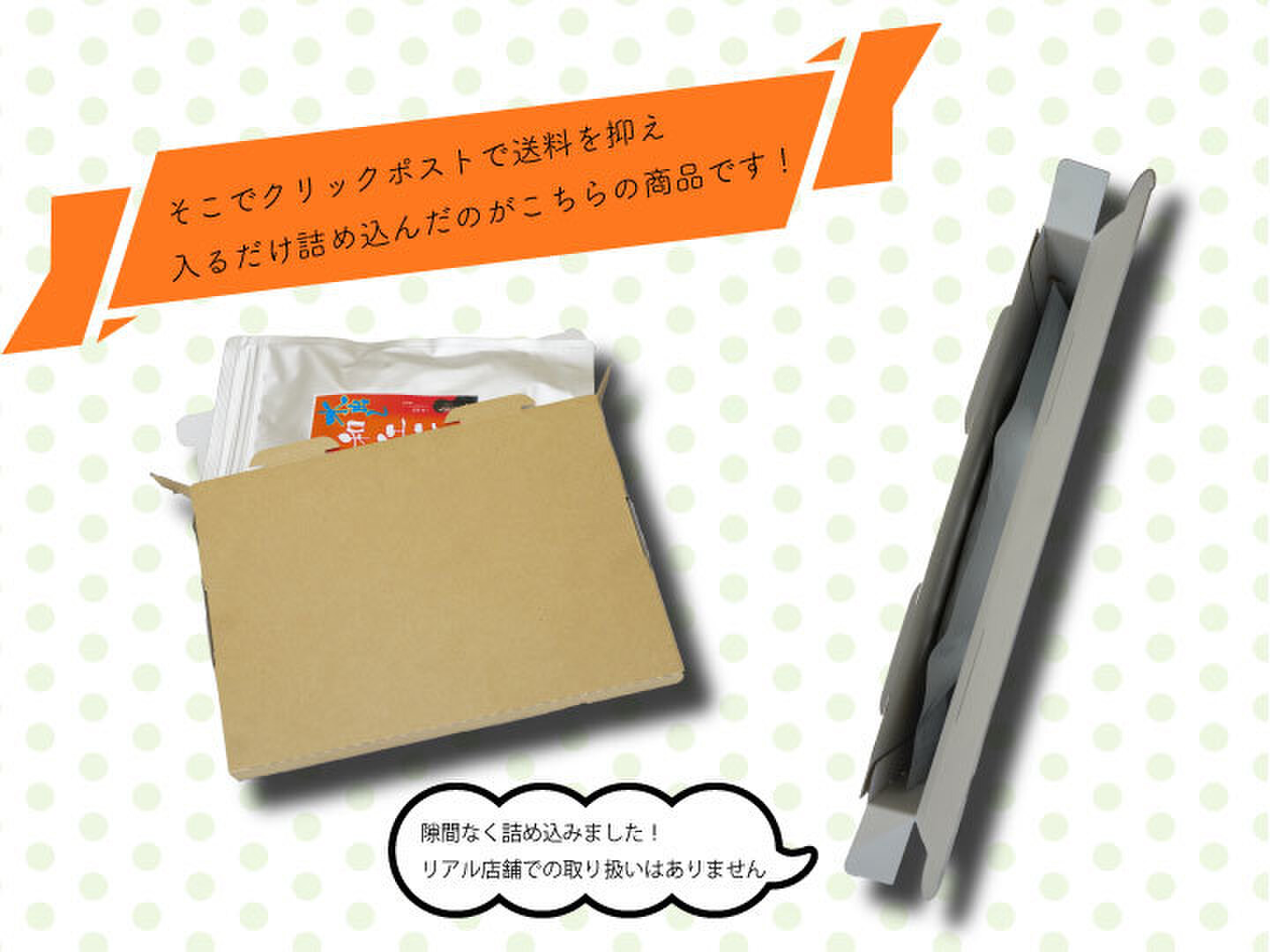 こちらの商品はクリックポストでの発送になりますので時間指定などはできません。ですがクリックポストの箱に合わせて梱包する袋を設計している為、Web限定で販売されている商品でお得になっております。