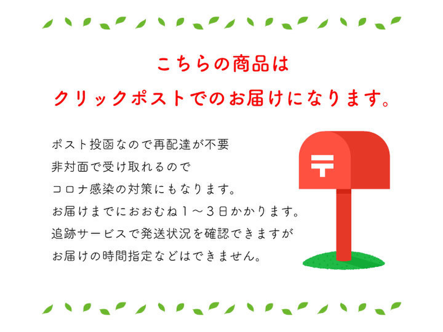 ▼日本郵便でのクリックポストでのお届けになります。食べチョクのメール便では、全国一律360円(税込)かかります。ので商品の定価から送料分の360円引かせていただいた金額になります。