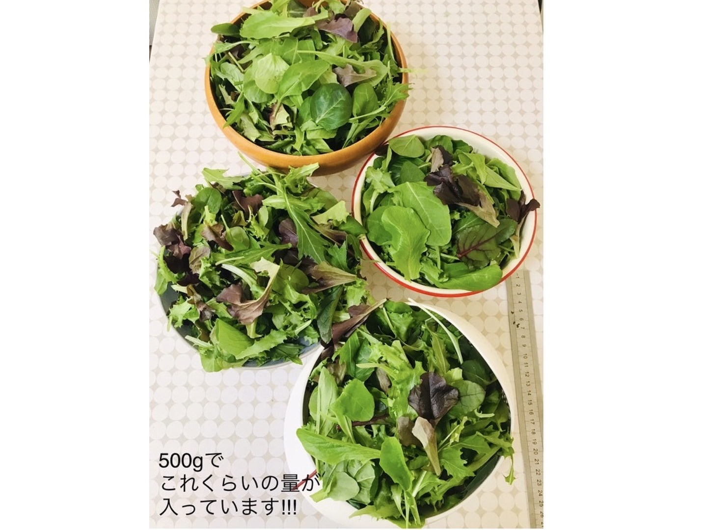 減農薬栽培で育てたベビーリーフミックスの500gです。