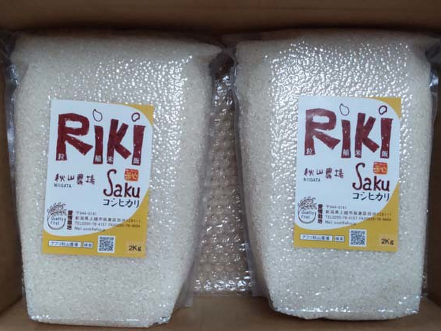【玄米2Kg×2】「Riki-Saku」コシヒカリ 真空チャックパック入 新潟県秋山農場産。石抜き選別済み。