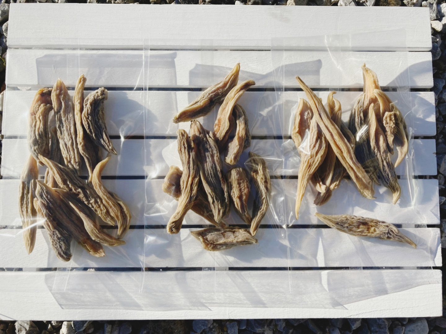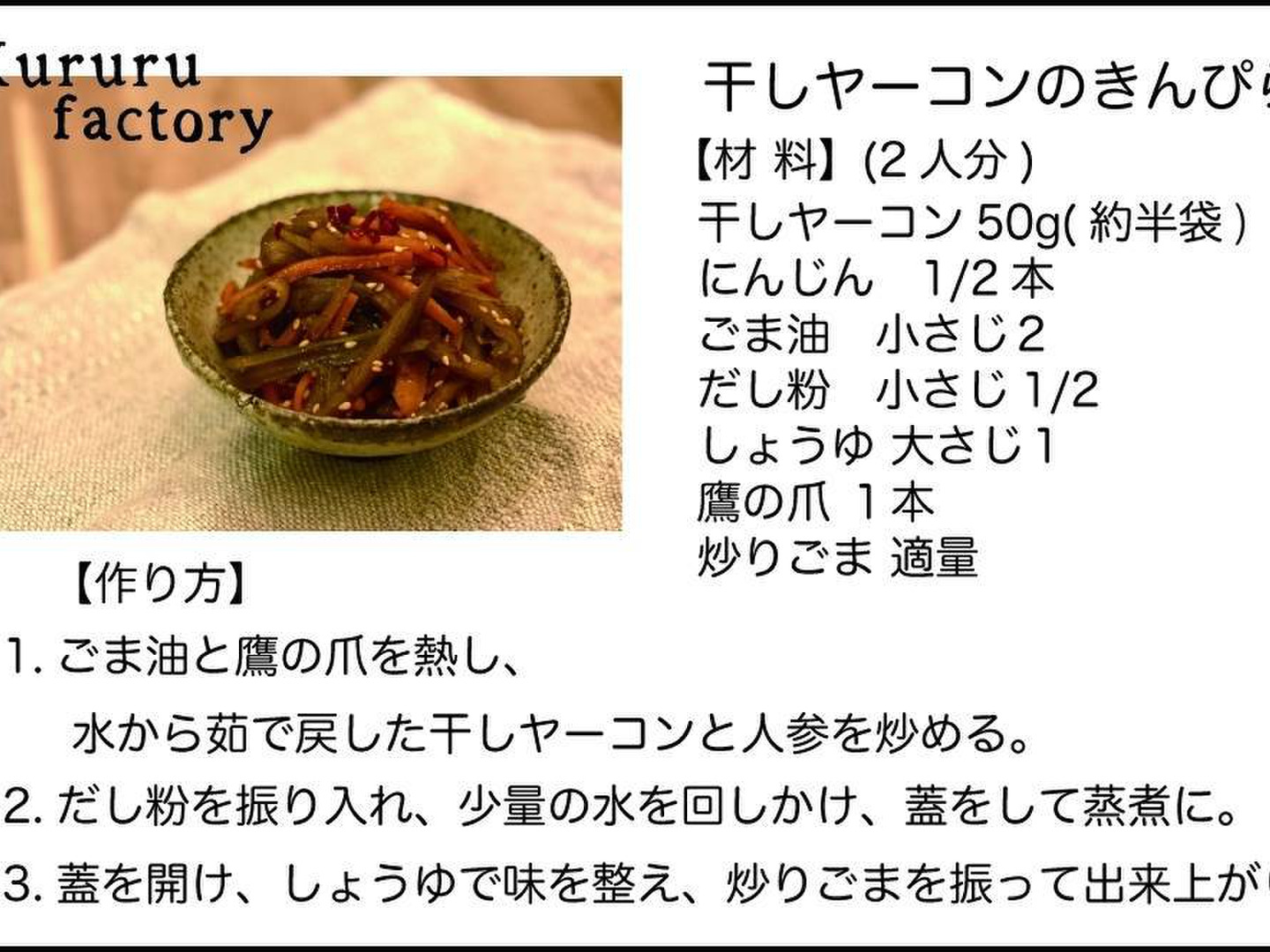 (小さすぎ、割れ)を乾燥させ、無添加無加糖の干しやーこんを作りました。