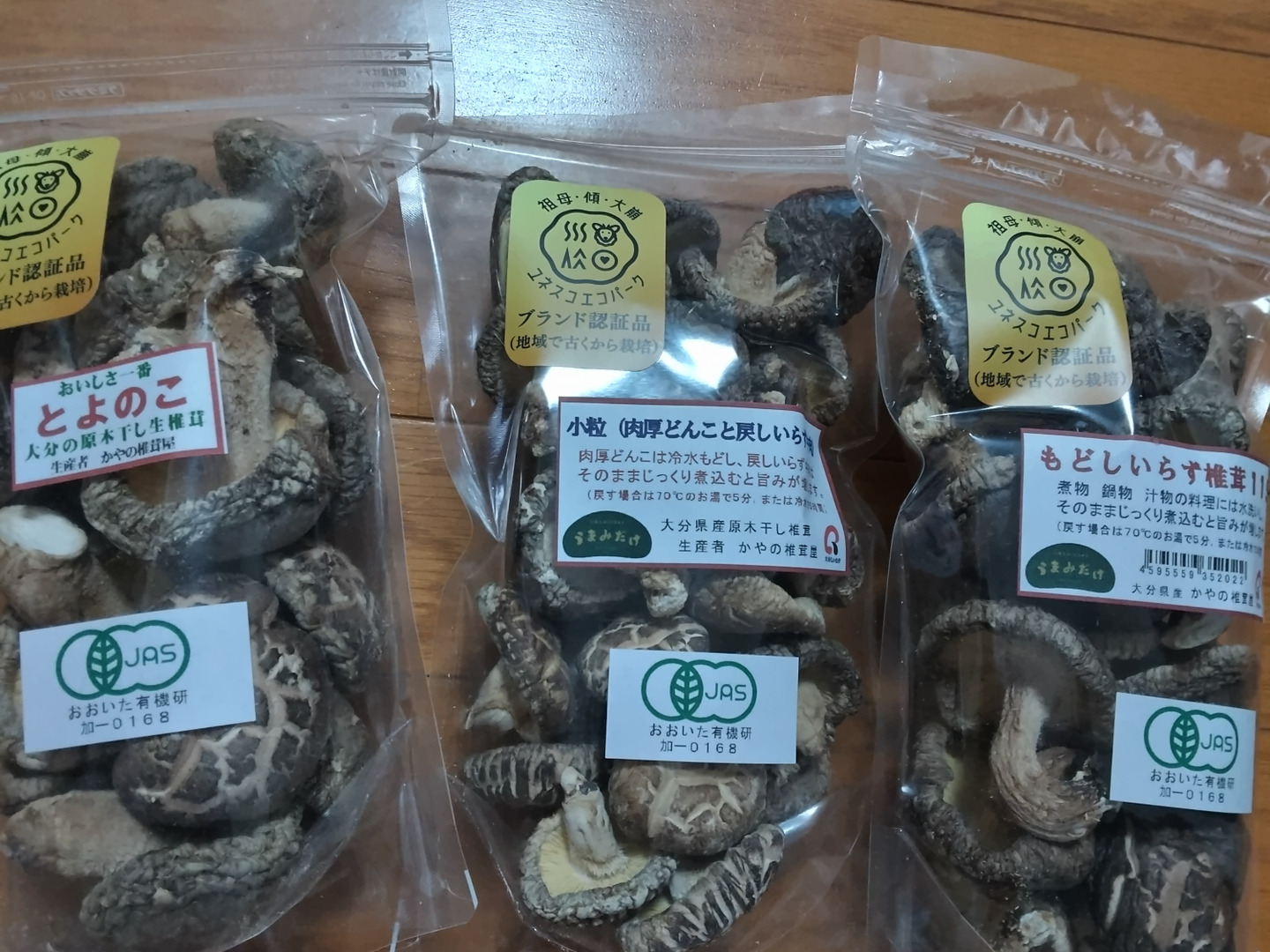 【夜市限定】山の産物セット(戻しいらずの干し椎茸 大分産 どんこ(肉厚)100g、中肉90g、小粒の100g入り3袋 ビタミンDと食物繊維が豊富)