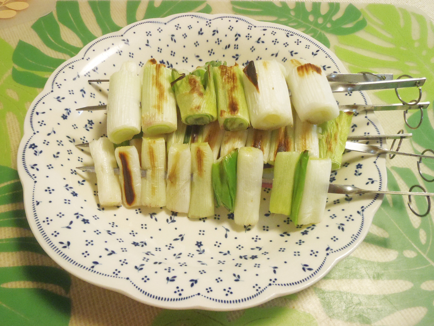 1.葱をぶつ切りにする。串に刺す(串を使わなくても大丈夫です)。