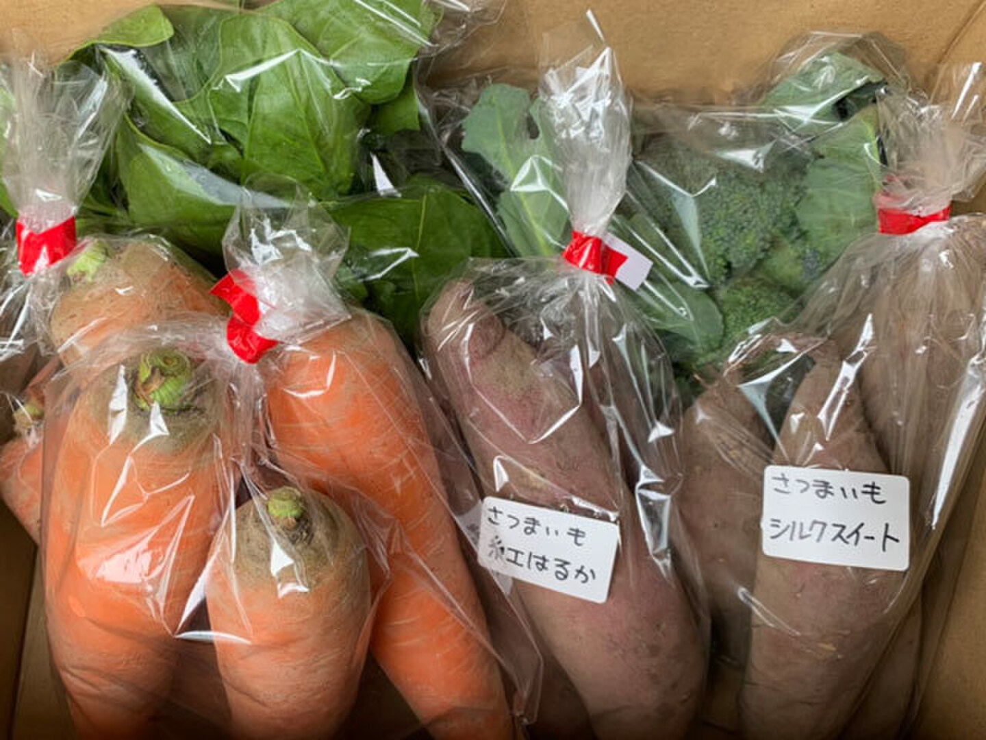 ニンジン、ブロッコリー、里芋、サツマイモ2種(紅はるか/シルクスイート)2020年2月上旬現在