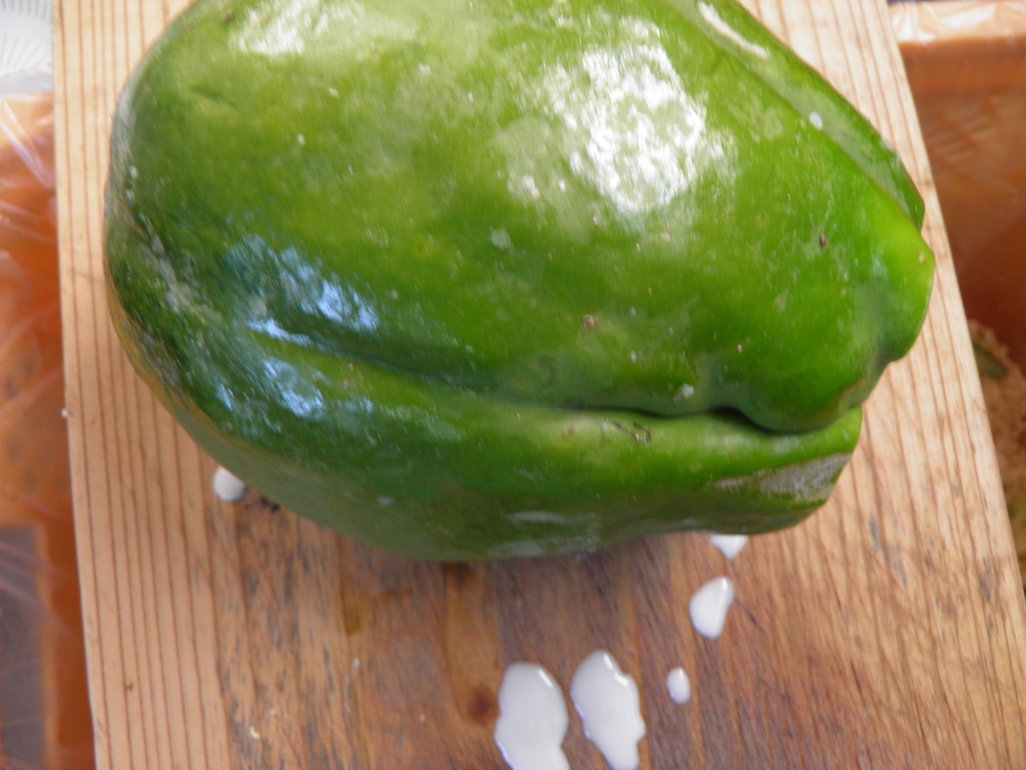 青パパイヤは水洗い後に防護手袋をして皮むきカット、真空包装しています。お肌が弱い方は手袋をお勧めしています。酵素に強い殺菌力があります。開封後すぐに利用できます。エグミはございません。