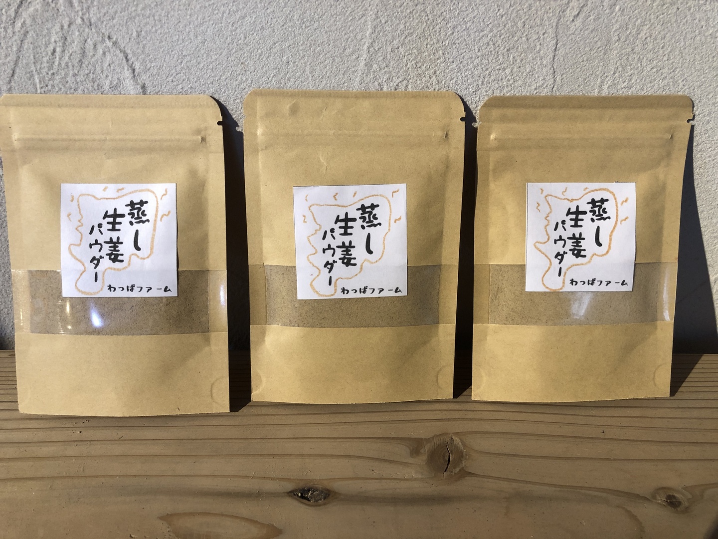 わっぱファームでは農薬・化学肥料を一切使わずに栽培した生姜を蒸して乾燥させてパウダーにしています。