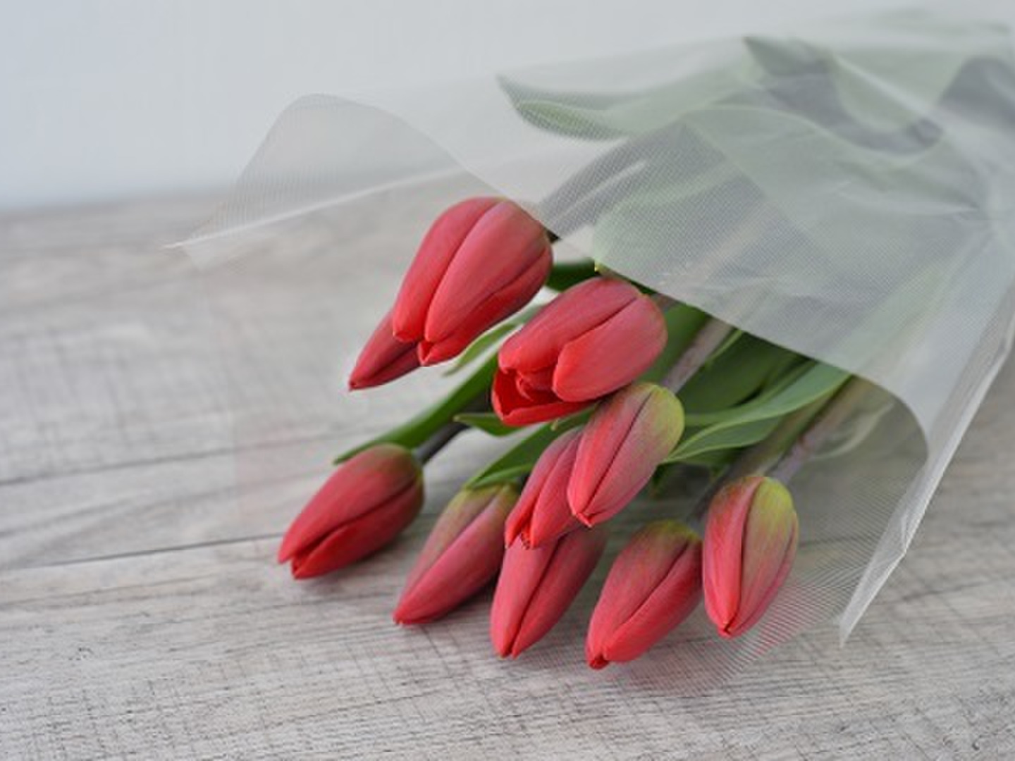 【4/5まで販売】ラッピングチューリップ 10本束(赤) ※北海道・沖縄県配送不可※