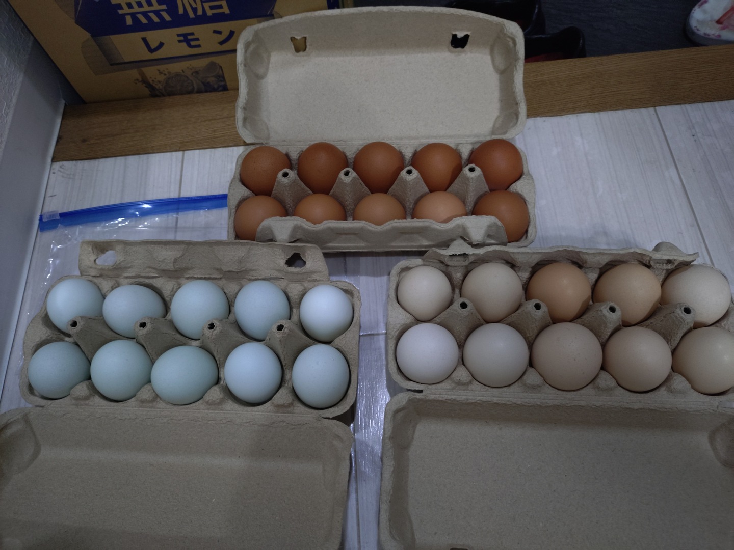 内容 平飼いアローカナの卵(10個)、平飼い後藤もみじ・ボリスブラウンの卵(10個)、平飼い後藤さくらの卵(10個)