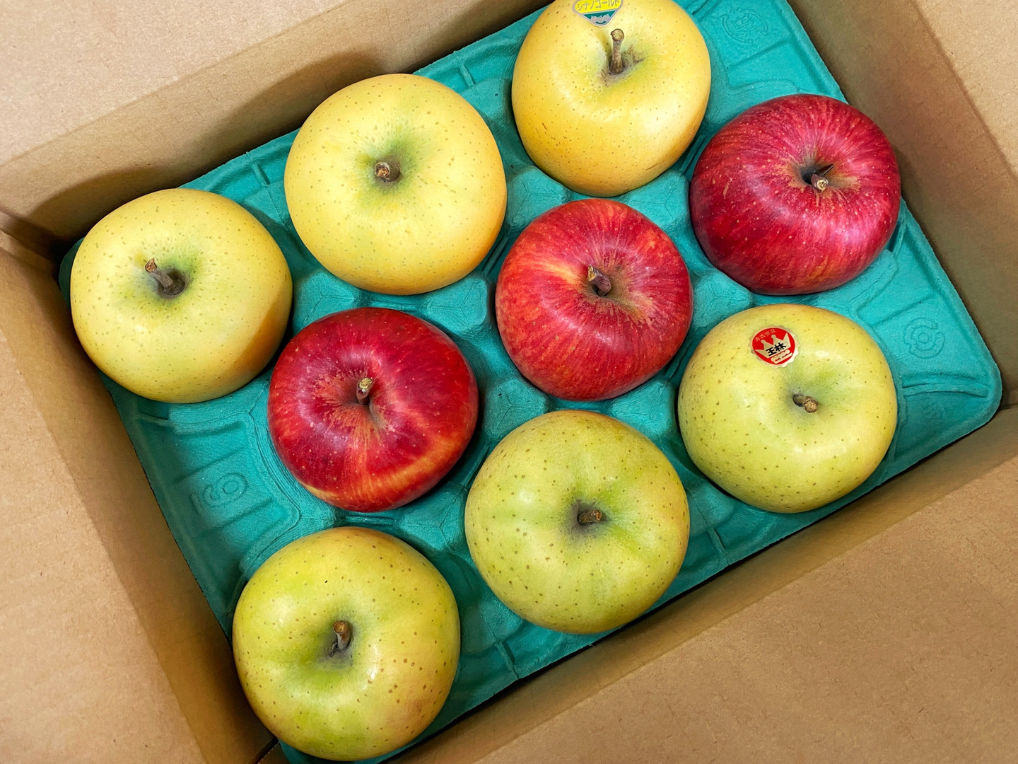 今回はサンふじの代わりに春明(しゅんめい)・シナノゴールド・王林の3品種です!