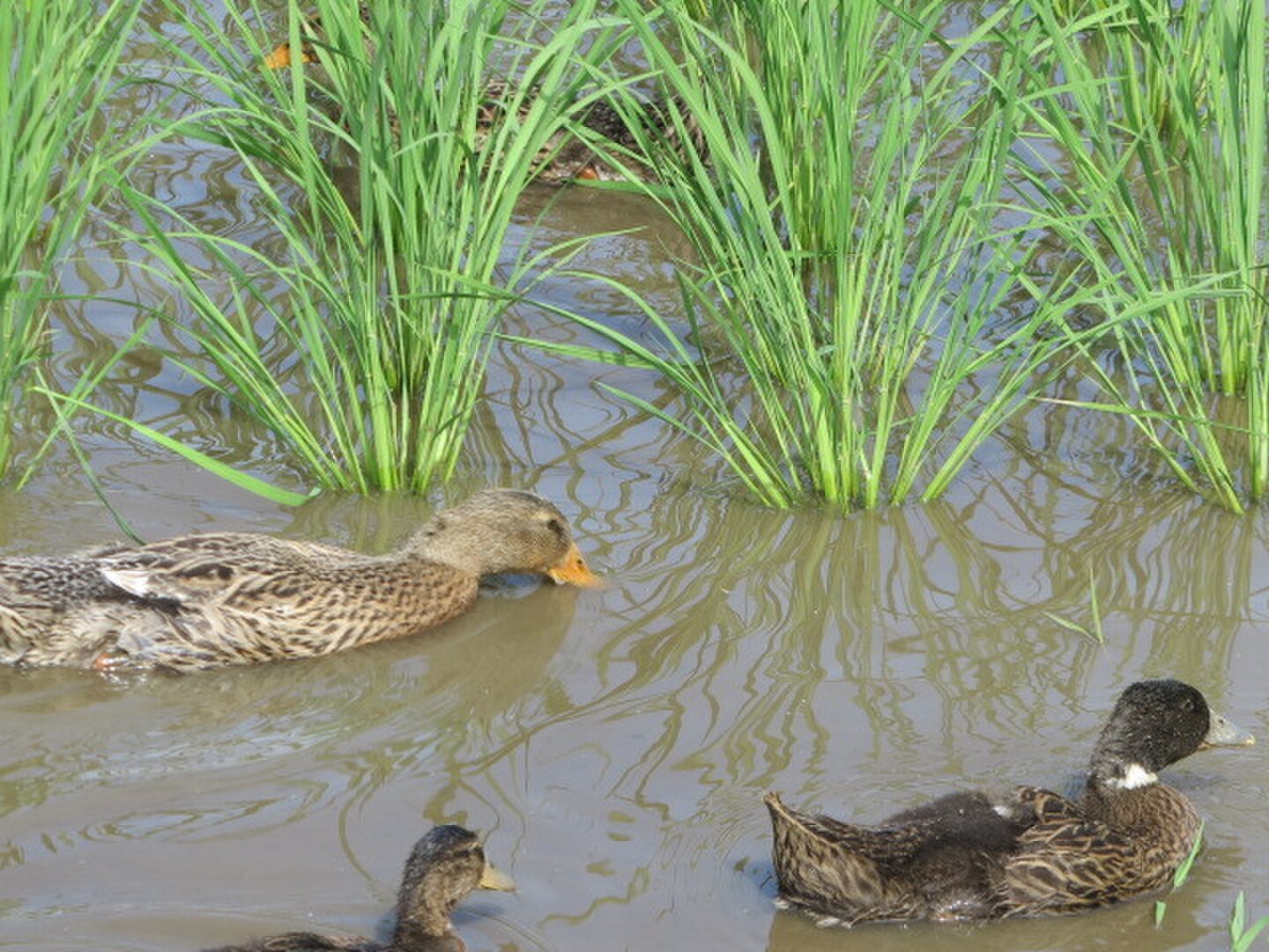 • 2 草取りはアイガモ達の力を借ります。