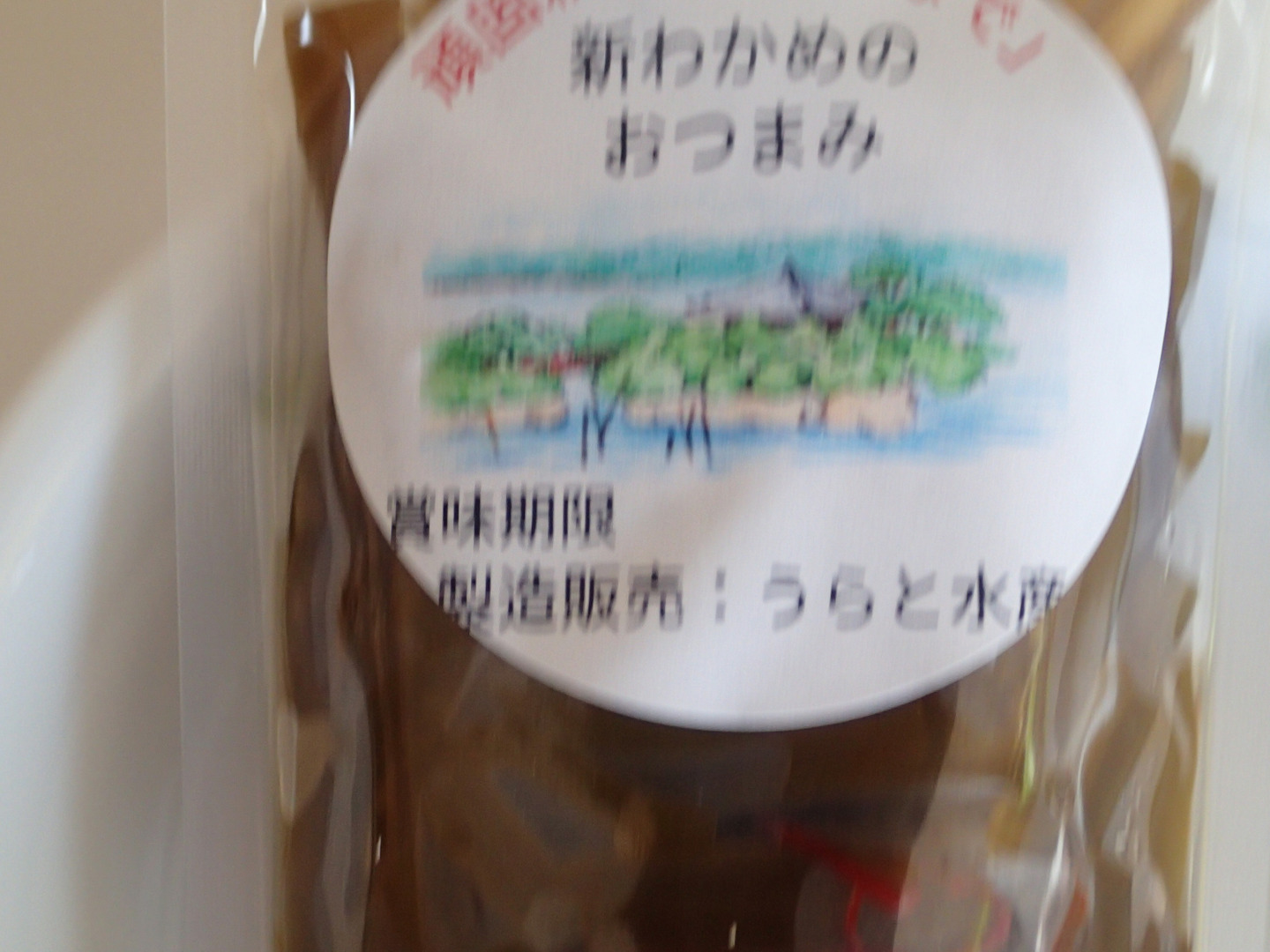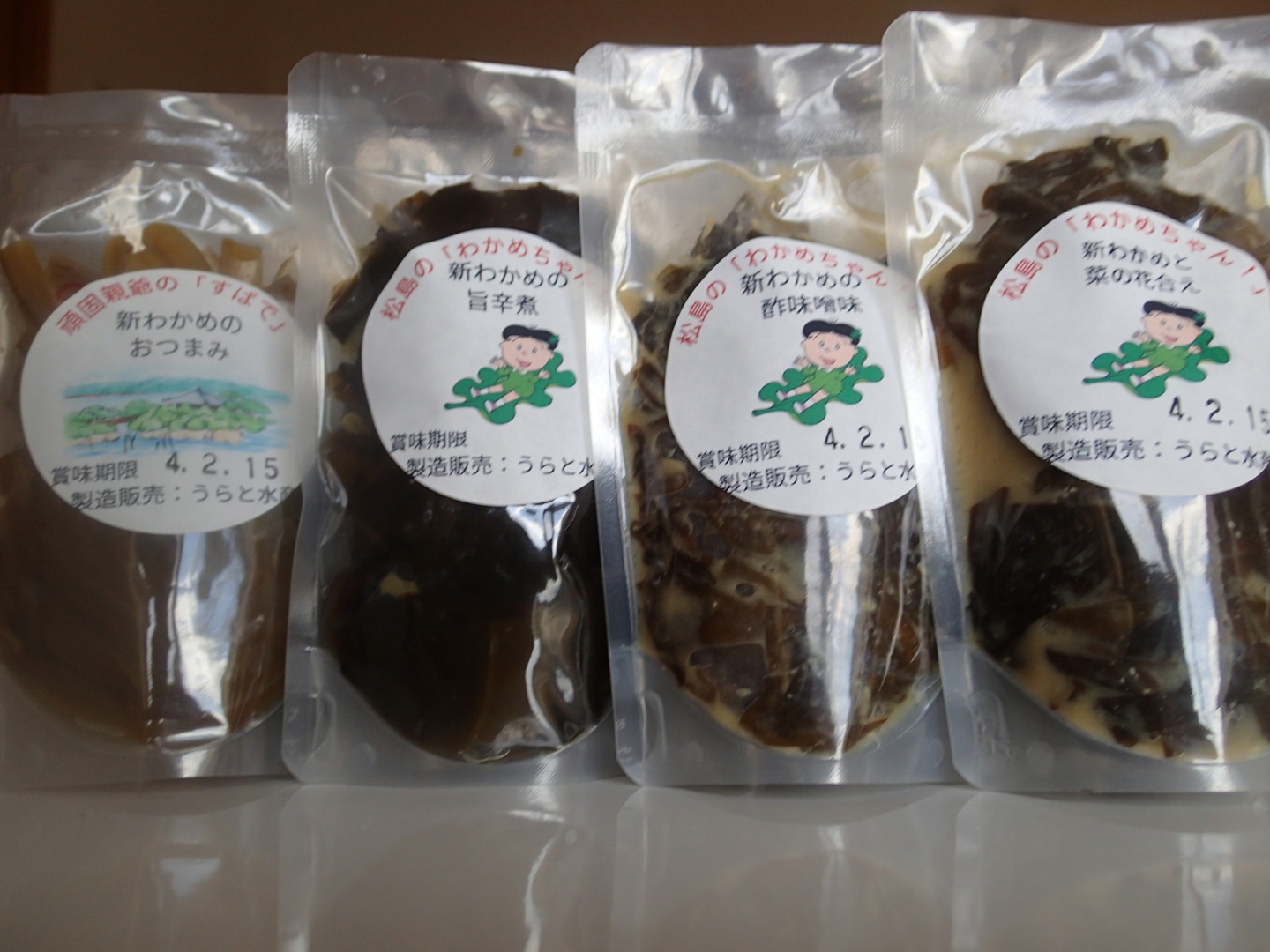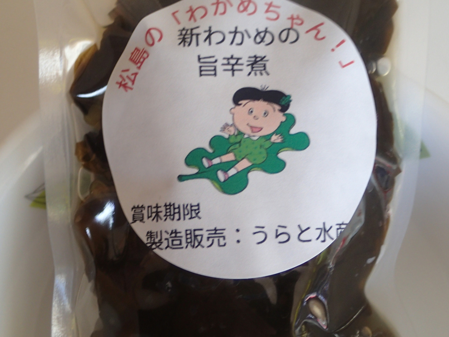先日のトンガの火山島噴火による津波で宮城県塩釜港では「養殖わかめ」に大きな被害がありました。本来は2月下旬から3月に収穫する「わかめ」を津波の為、早取りしました。その「震災わかめ」を使った「わかめの加工品」です。
