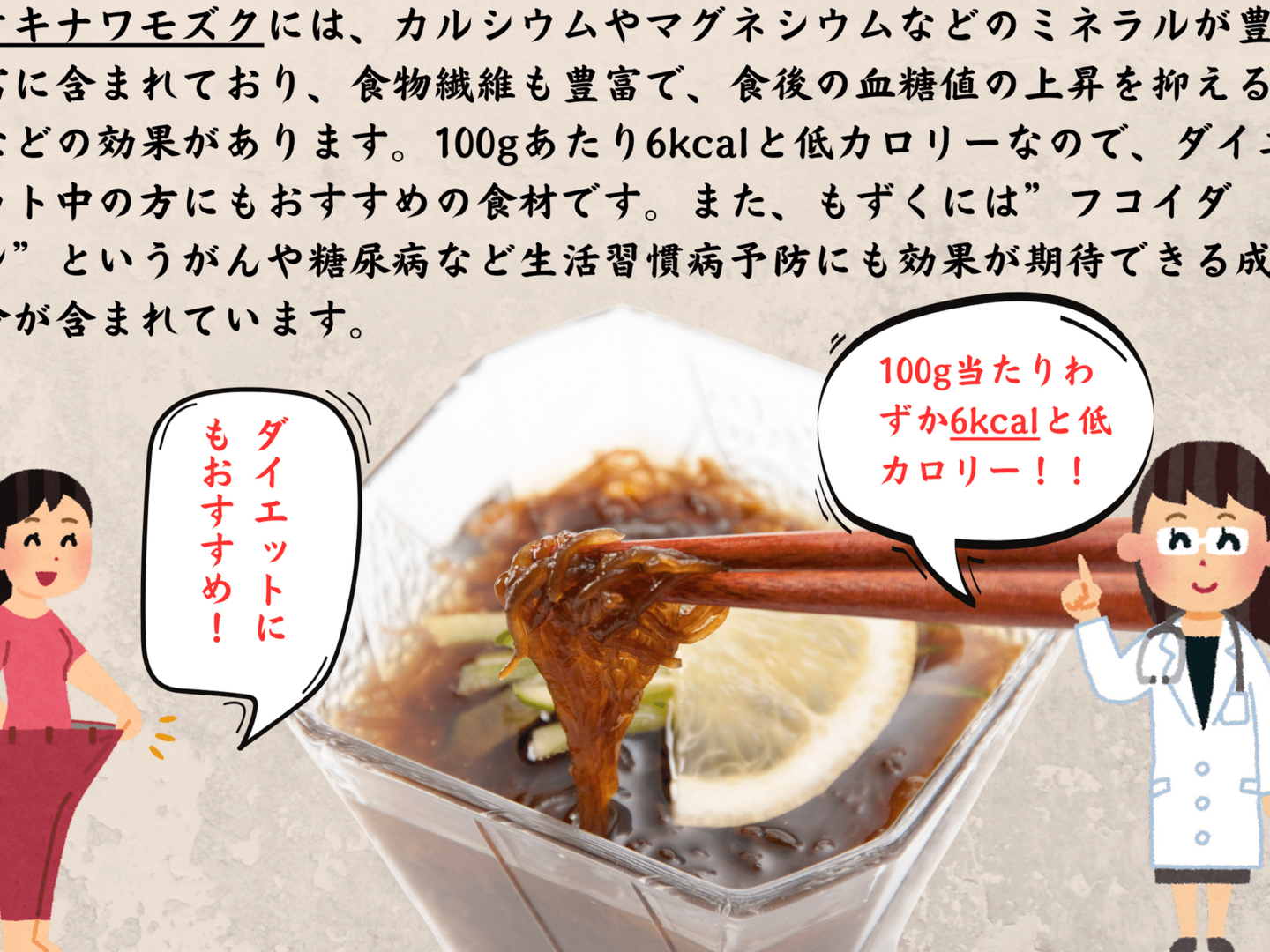 フコイダンやミネラルが多く、もずく本来の味わいをお楽しみ頂けます。