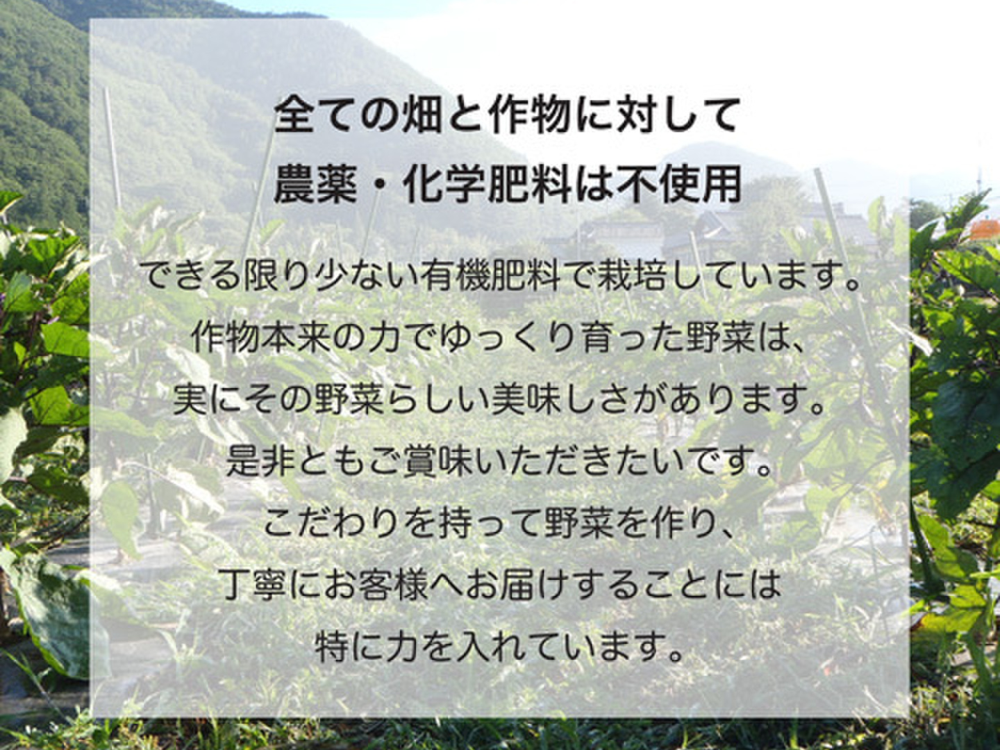 作物本来の力でゆっくり育った野菜は、実にその野菜らしい美味しさがあります。是非ともご賞味いただきたいです。こだわりを持って野菜を作り、丁寧にお客様にお届けすることには特に力を入れています。