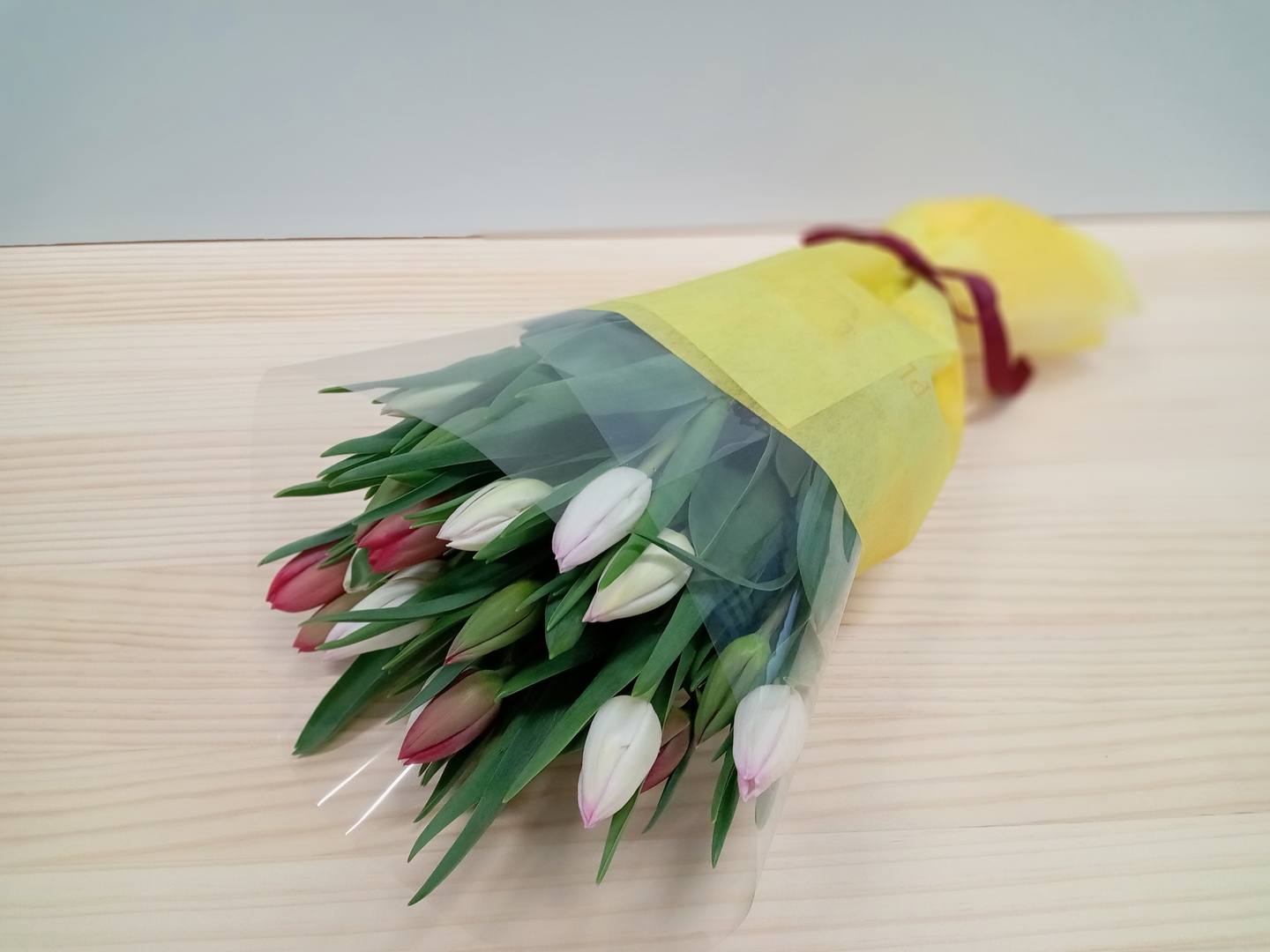 【4/5まで販売】ラッピングチューリップ 20本束(赤桃ミックス) ※北海道・沖縄県配送不可※