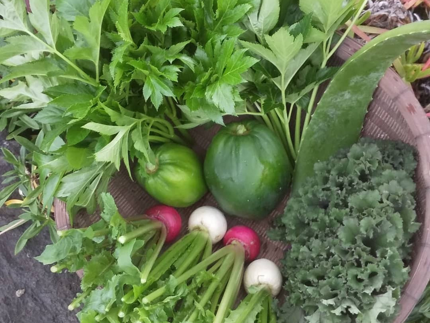 青パパイヤ1kg、アロエベラ1葉、明日葉2束、旬の野菜2品