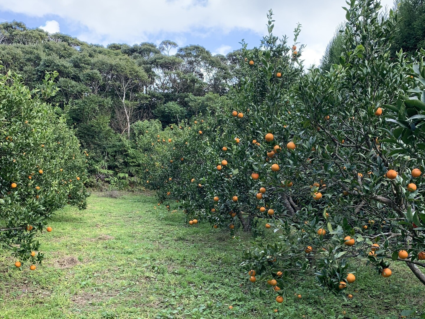 奄美大島の中でも高地であるためか、雲の中というか霧の中というか・・・そういう時が多く、幻想的な不思議な気持ちになるたんかん畑です。