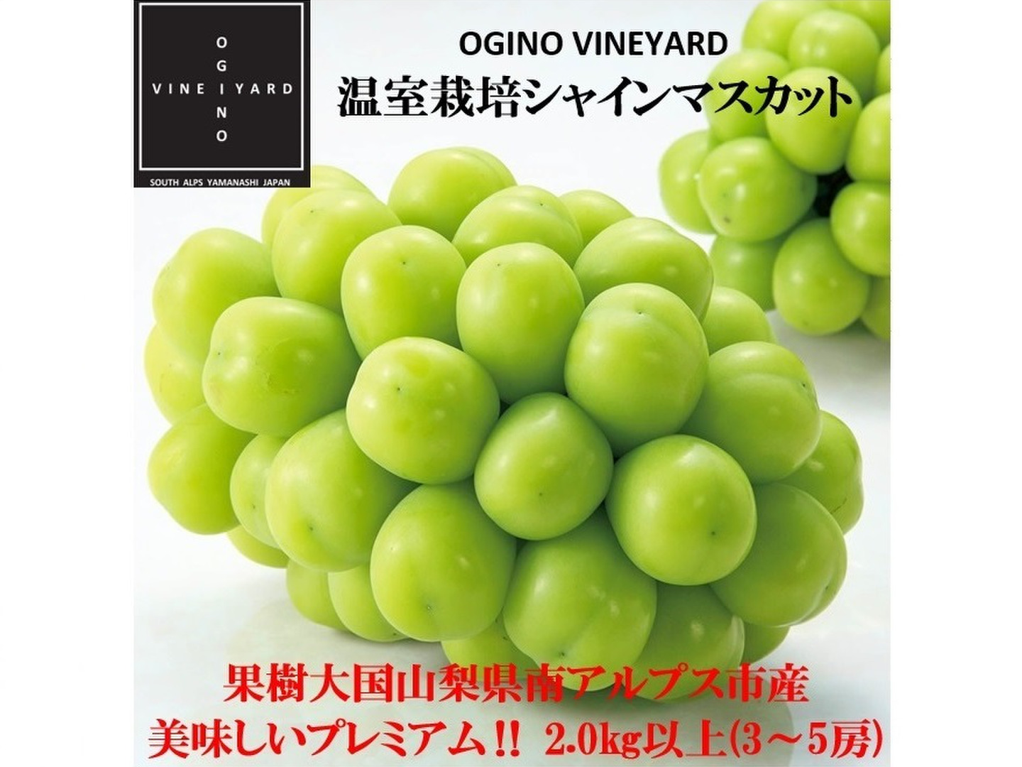 果樹王国山梨県産 温室栽培シャインマスカット 2.0㎏以上 3~5房 熨斗対応可能
