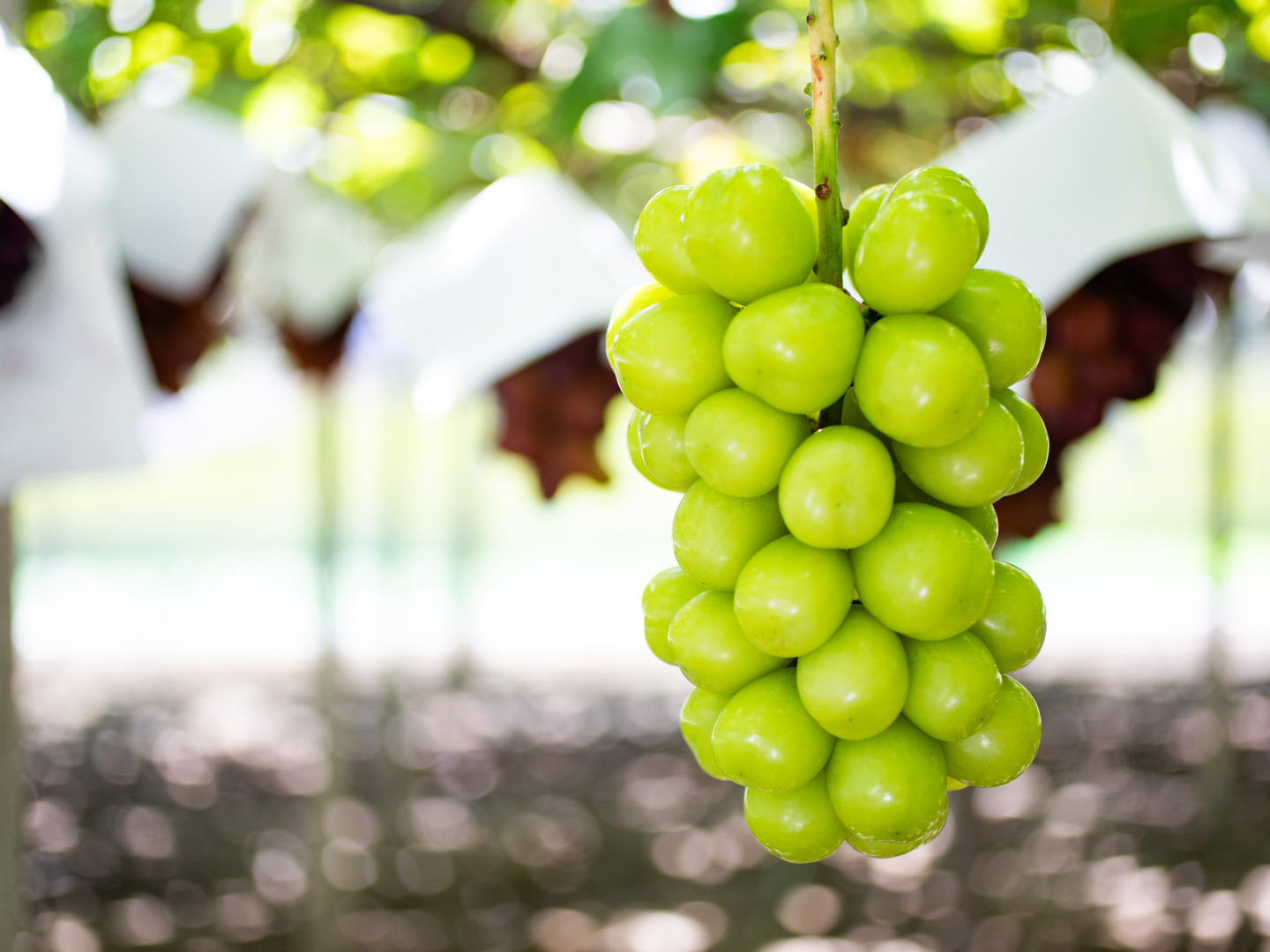 美しい外観と大粒の実、マスカット由来の芳醇な香り、 20度以上になることもあるという高い糖度を誇ります。