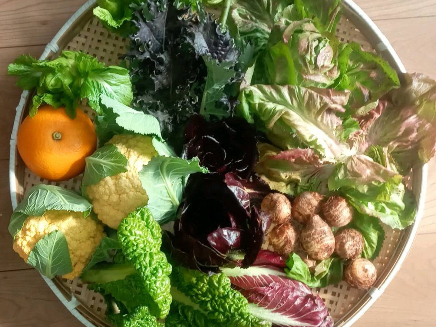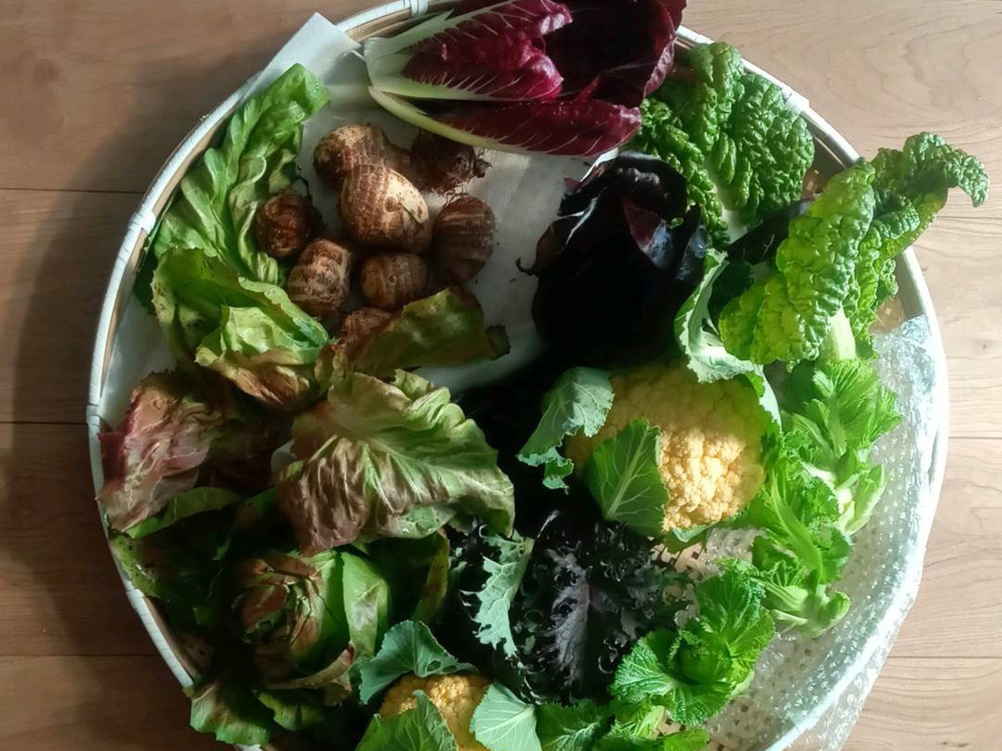 店頭では滅多にお目にかかることがないほろ苦系のイタリア野菜とアイボリーホワイトのカリフラワー他の冬野菜セットです。